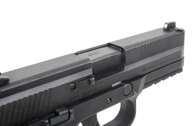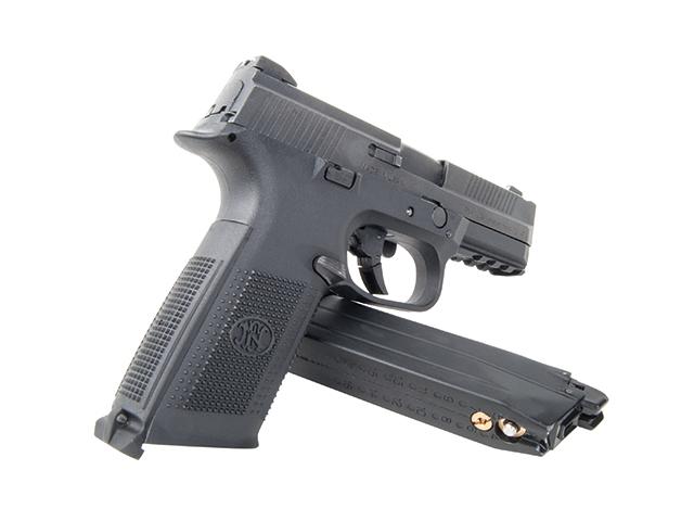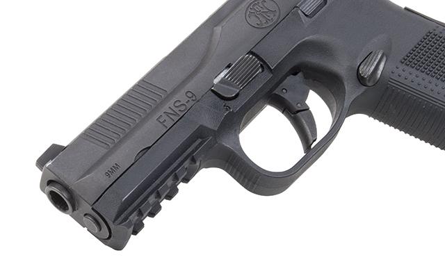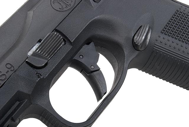 Das lizensierte FN-Modell verfügt über eine Railschiene, eine 3-Punkt-Visierung und einen 2-teiligen Abzug.