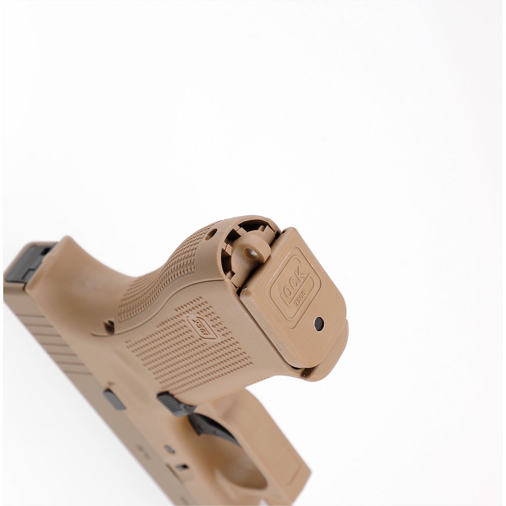 Optisch bietet die gasbetriebene Airsoft-Ausführung ein Maximum an Authentizität. Doch statt 9x19-Patronen greift sie auf 6 mm BBs zurück, die sich dank des außen einstellbaren Shoot-Up präzise durch den Lauf treiben lassen. Der Schlitten ist aus hochwertigem Metall gefertigt, gibt dank kräftigem Blowback einen deutlich spürbaren Rückstoß ab. Das Magazin hat eine Kapazität von 22 Schuss, und an der Rail lässt sich GLOCK-typisches Zubehör befestigen.