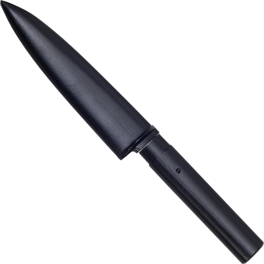 Ein praktisches, kleines Messer mit Klinge aus rostfreiem Stahl, Holzgriff und Holzscheide.