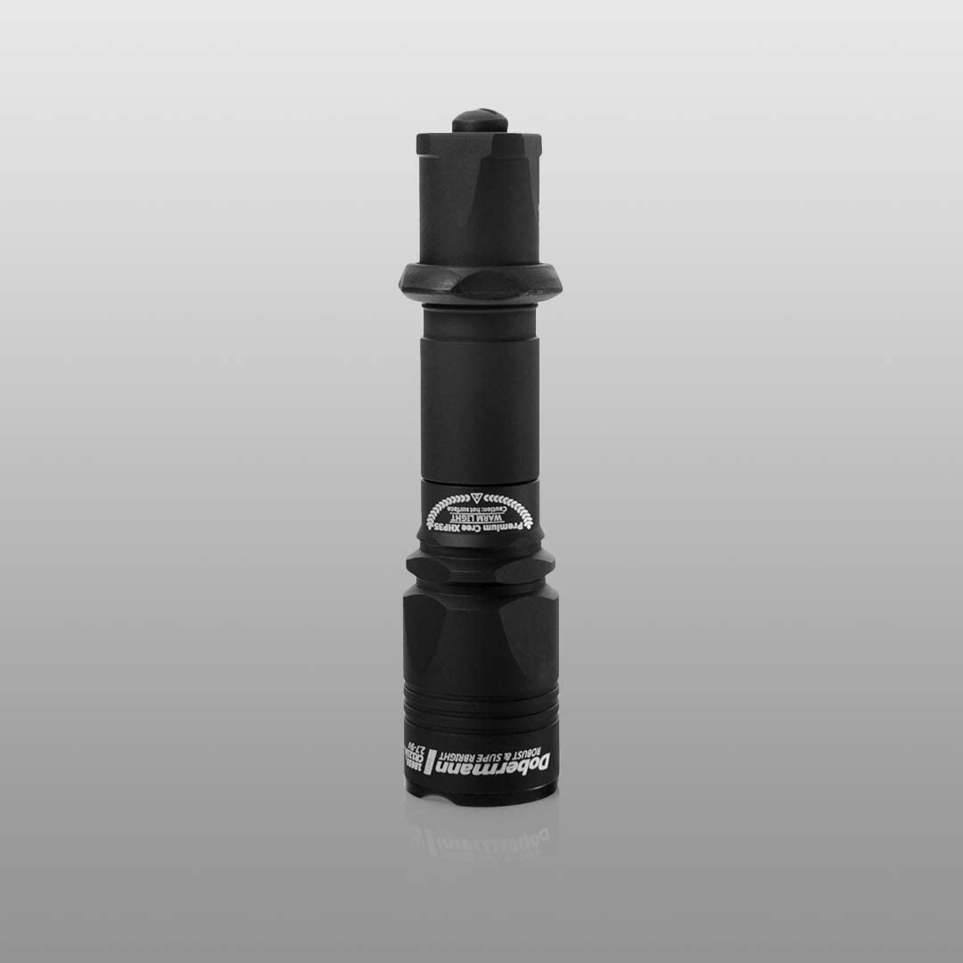 - Armytek Dobermann Pro ist eine taktische Taschenlampe, ausgestattet mit eine Lichtausbeute bis 1570 Lumen.