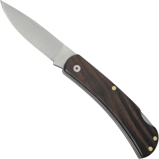 Taschenmesser mit Griffbeschalung aus Schichtholz. Die Klinge ist aus 420 rostfreiem Stahl und wird über einen Lockback Verschluss gesichert. Klingenlänge 75 mm