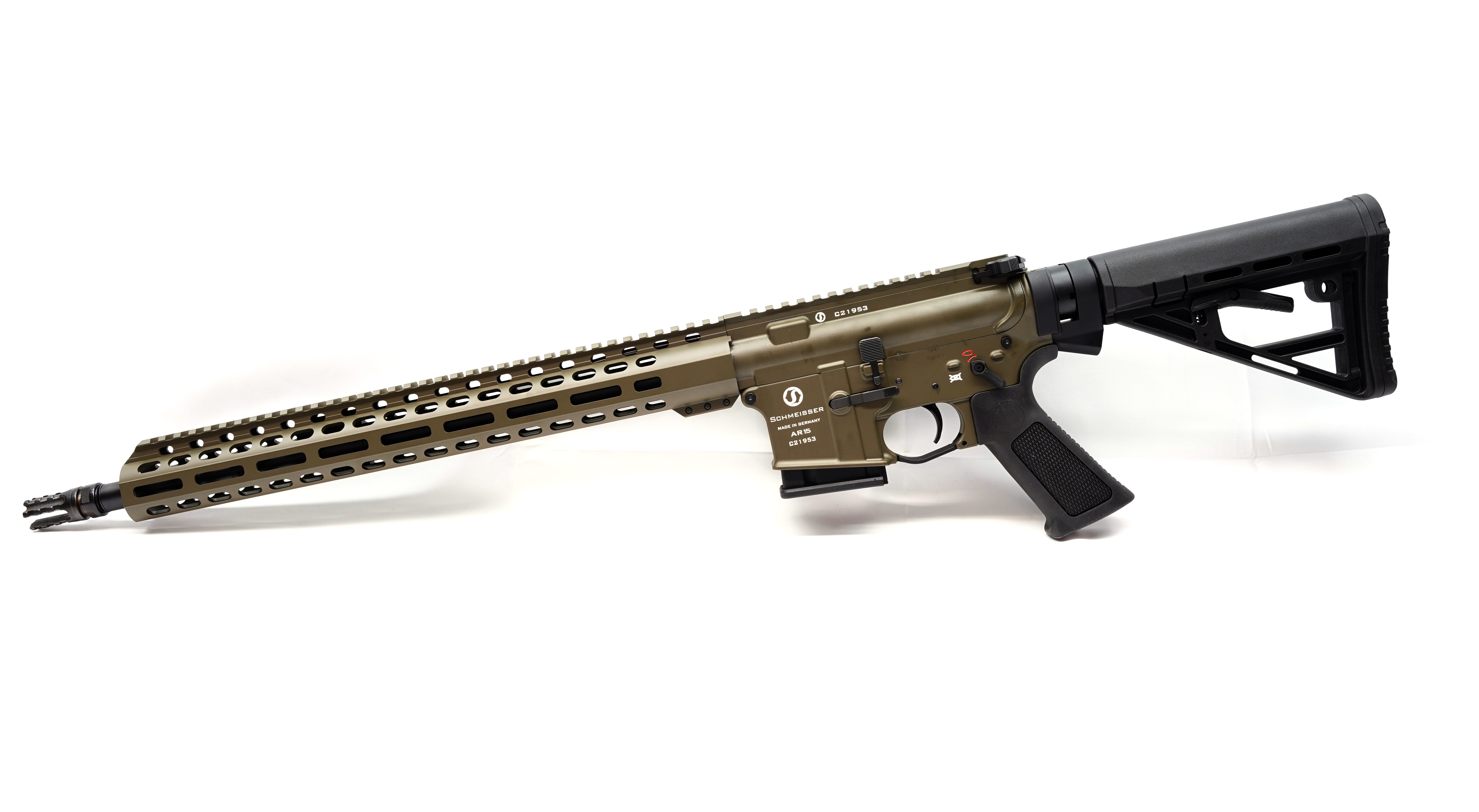 Die Marksman Serie setzt neue Maßstäbe in der AR15 Präzision und Handhabung. Genau die richtige Wahl für alle, die sich Perfektion rightout-of-the-box wünschen. Jede einzelne Schmeisser AR15 wird nach der Endmontage mit diverser Munition und unterschiedlichen Magazinen Probe geschossen. So kann sich jeder Schütze von Anfang an auf seine Waffe verlassen. Alle Schmeisser AR15 sind beidseitig bedienbar. Die Schmeisser AR15 DMR 18″ ist ein maximal ausgestattetes Präzisionsgewehr mit einer korrisionsresistenten Beschichtung in der Farbe RAL 8000 erhältlich. Diese Waffe hat einen kannelierten,freischwingenden .936er Matchlauf mit IPSC konformem NOREC Kompensator einen schlanken Keymod-Vorderschaft und einen Stahl Gasblock Der vollverstellbare Match-Abzug und der Schaft lassen sich individuell auf jeden Schützen anpassen Sowohl Sicherung, Magazinauslöser, Durchladehebel als auch Verschlussfang sind beidseitig ausgelegt Die Solid-Verstärkung am Lower erhöht die Stabilitität um ein Vielfaches gegenüber herkömmlichen AR15 Auslieferung erfolgt serienmäßig mit 10 Schuss Magazin System: Halbautomatisches direktes Gassystem Kaliber: .223 Rem. Gewicht: 4350 Gramm Länge: 95 cm eingeschoben, 104 cm ausgezogen Lauf: 18"/46 cm, Edelstahl, geflutetes Bull Barrel Profil, Oberfläche geschwärzt" Patronenlager: .223 Rem./ 5.56 NATO Drall: 1/8 Knopfgezogen Mündungs-feuerdämpfer: NoRec Kompensator, Stahl, A2/M4 nach Mil-Spec Gewinde: 1/2x28 UNEF-2A Verschluss: Semi-Auto Verschlussträger, phosphatiert und teilverchromt Oberes Gehäuse: Nach Mil-Spec aus 7075 T6 Aluminium geschmiedet inkl. Picatinny-Profil, harteloxiert Durchladehebel: Beidseitig bedienbar, 6082 T6 Aluminium Handschutz: Freischwingend mit Stahlgewindeeinsätzen (HELICOIL®). 39 cm Länge, “Slim-Line” Profil, Picatinny-Schiene oben, dreiseitige MLOK Haltepunkte, harteloxiert Unteres Gehäuse: nach Mil-Spec aus 7075 T6 Aluminium geschmiedet, harteloxiert Schaft: A4 Kunststofffestschaft mit integriertem Reservemagazin (Kapazität 10 Patronen) Buffer: Standard rifle buffer und Feder Sicherung: Beidseitige Flügelsicherung Griff: Kunststoff Pistolengriff gummiert Magazin: 10 Schuss Schaftröhre: Voll verstellbarer Sniper buttstock Verschlussfanghebel: 45° Beidseitig bedienbar, Stahl Lieferumfang: Waffe Koffer Zweibein Picatinnyrails Bedienungsanleitung Reinigungsset Reinigungskordel Griffrücken in verschiedenen Größen ACHTUNG: Zum Kauf dieses Produkts ist die Vorlage der Erwerbsberechtigung erforderlich !!!