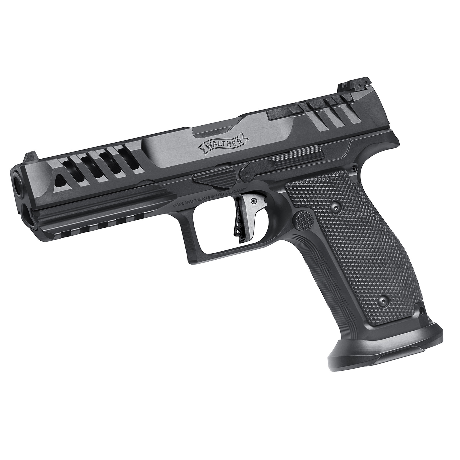 Die PDP Match Steel Frame vereint alle Top-Features der PDP-Familie in einer high-performance Wettkampfwaffe der Superlative. Der Dynamic Performance Trigger setzt selbst für Walther mit seiner langen Historie von Abzügen mit Weltruf noch einmal neue Standards. Durchbrochene Serrations an der Mündung sorgen für das rasche Abkühlen des Laufs und reduzieren das Gewicht – zugleich verleihen sie der Waffe das aggressive Aussehen eines Supersportlers. Magazinböden aus Aluminium und der Leichtmetall-Magwell bilden die ideale Symbiose aus Style, Schlagfestigkeit und Effizienz und ermöglichen das reibungslose Nachladen in der Bewegung.
