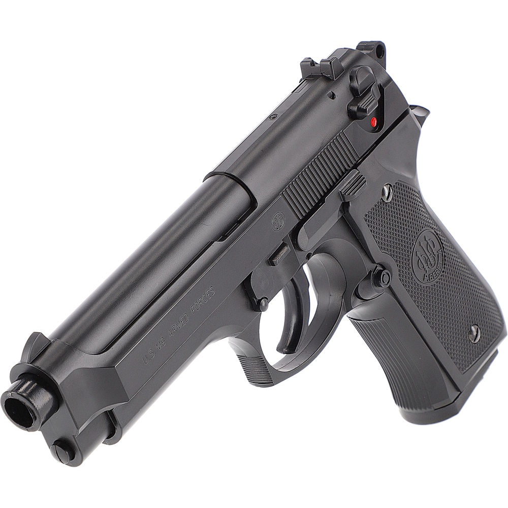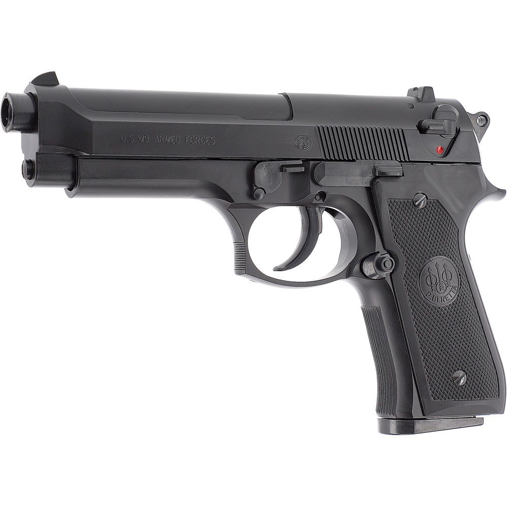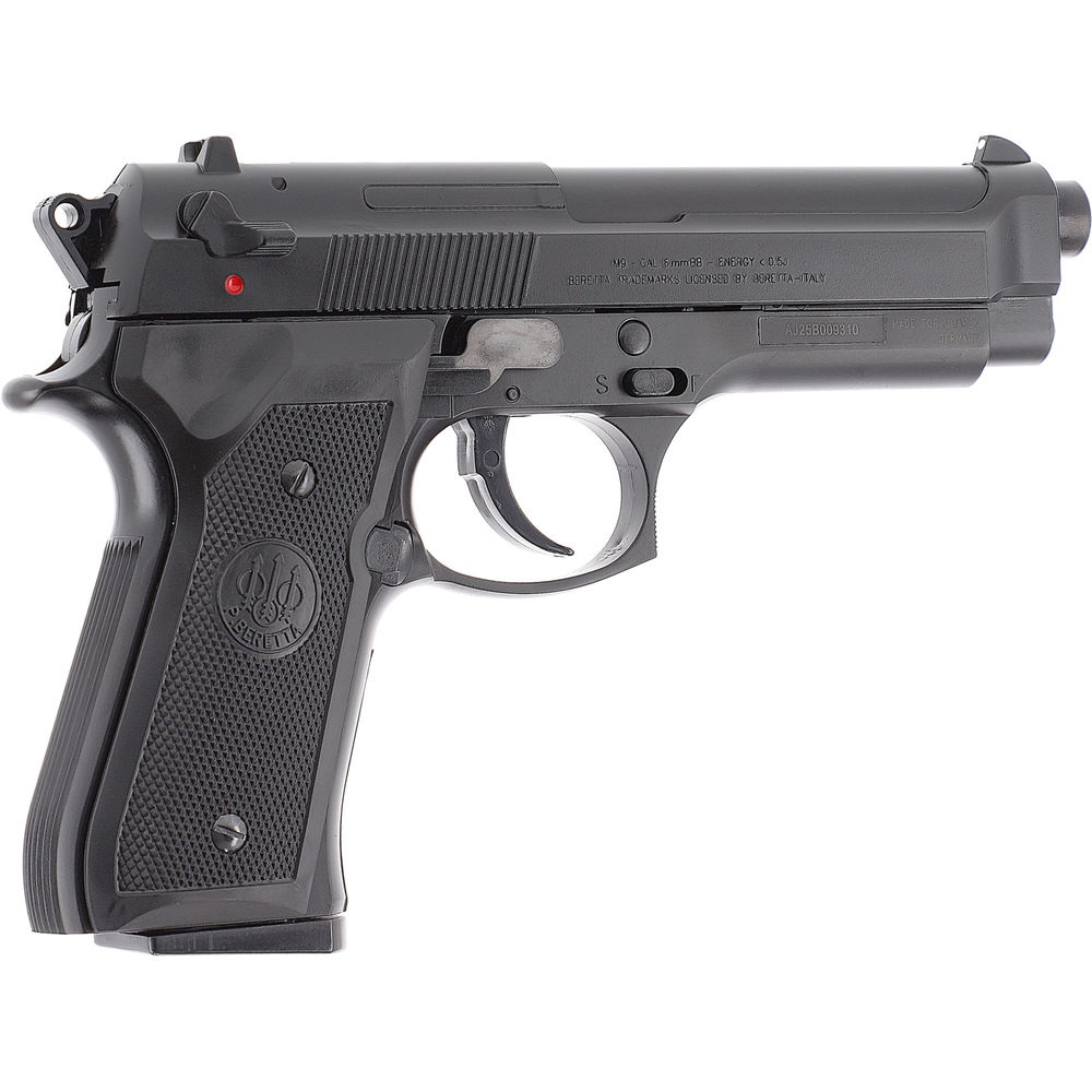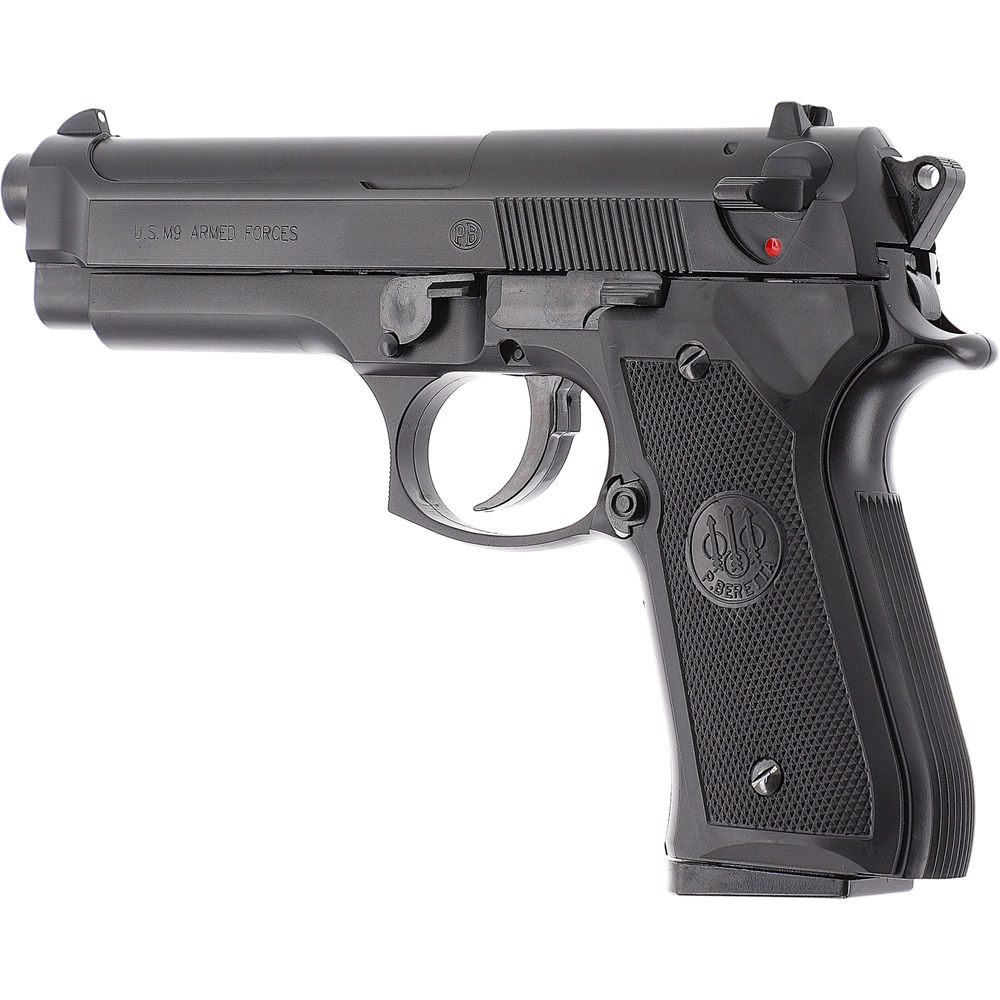 "M9" ist die interne Bezeichnung für die Beretta 92SB-F, so wie sie als Militärwaffe in den USA eingeführt wurde. Hier eine unverwüstliche Federdruck-Variante. Inkl. 100 BBs.