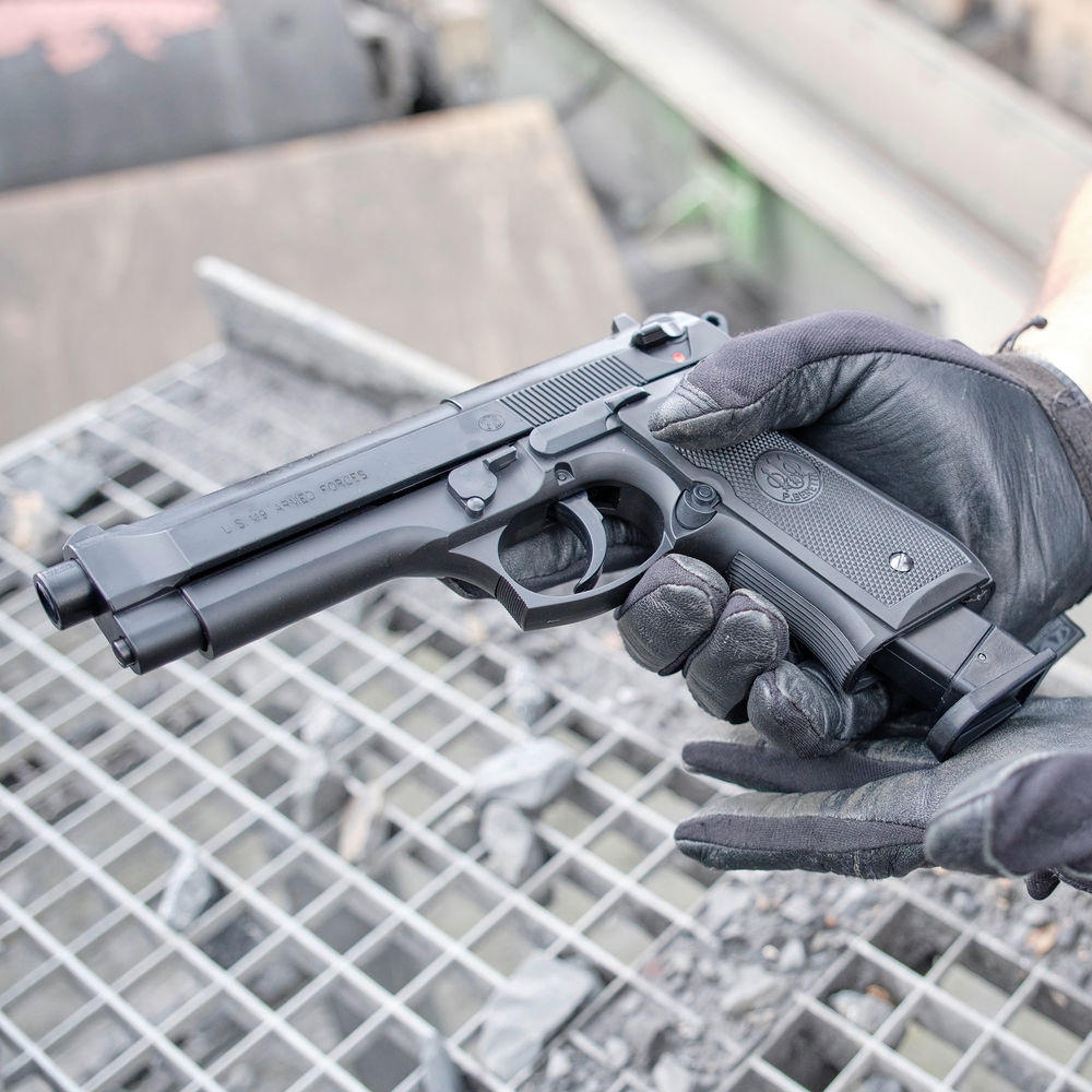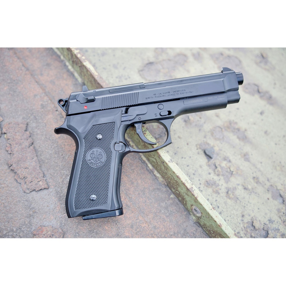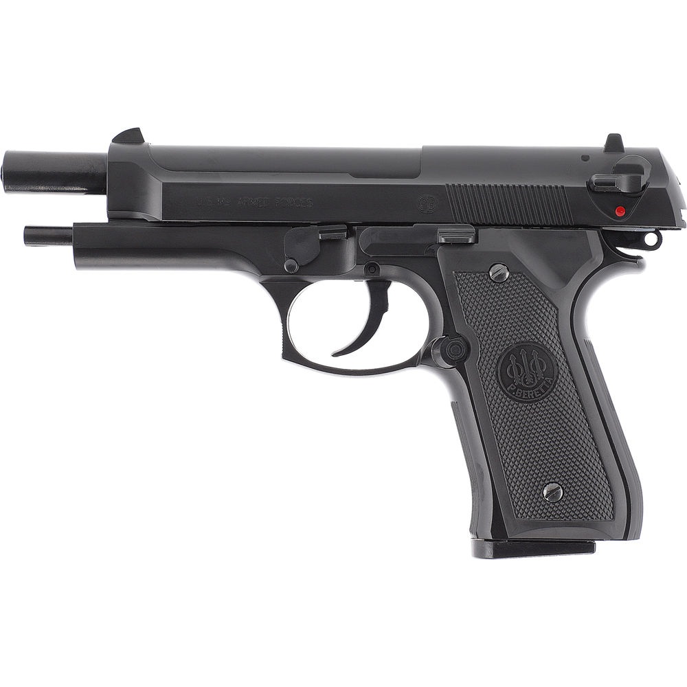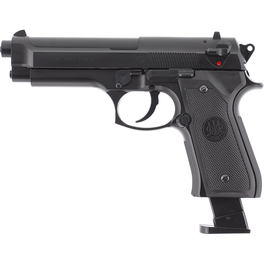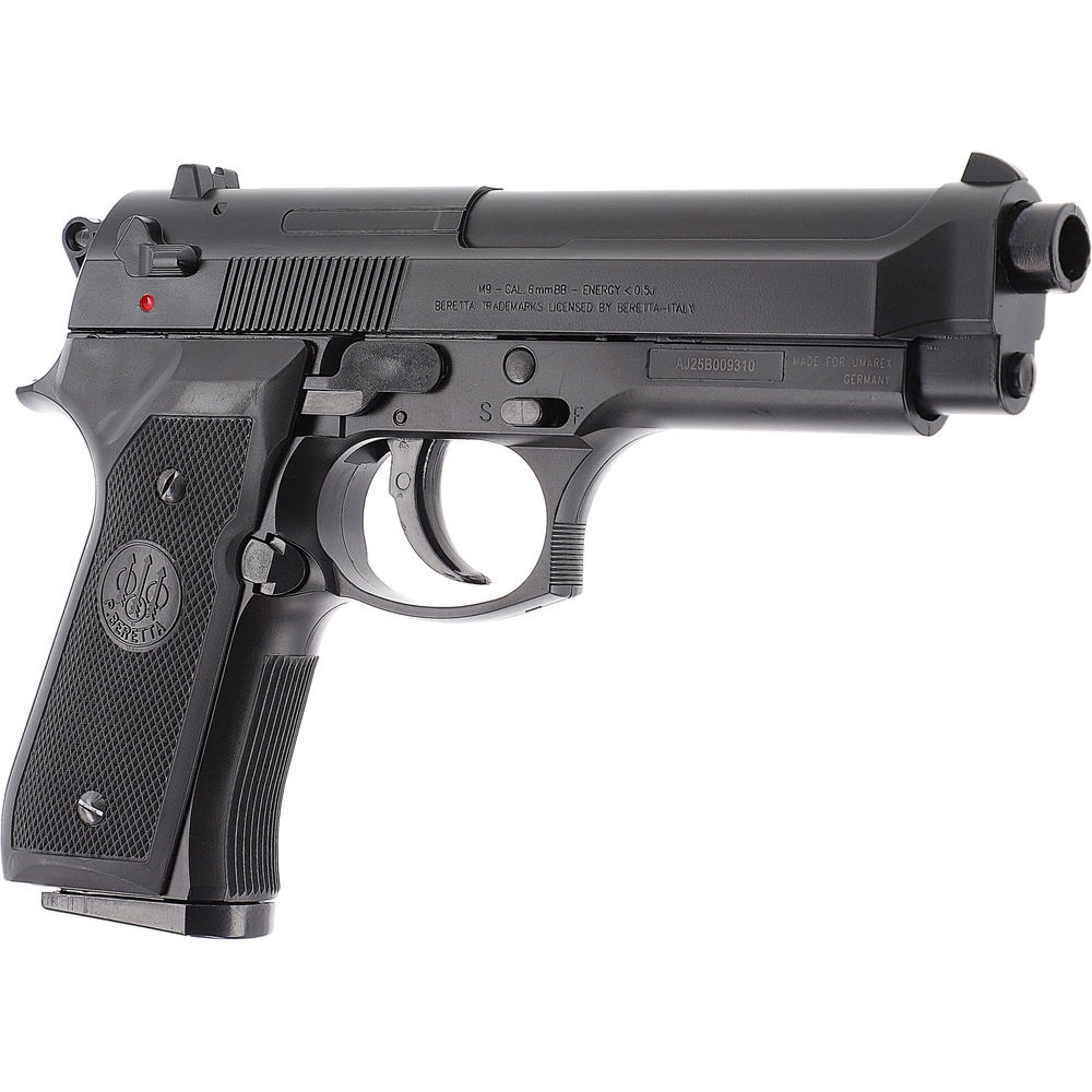 "M9" ist die interne Bezeichnung für die Beretta 92SB-F, so wie sie als Militärwaffe in den USA eingeführt wurde. Hier eine unverwüstliche Federdruck-Variante. Inkl. 100 BBs.
