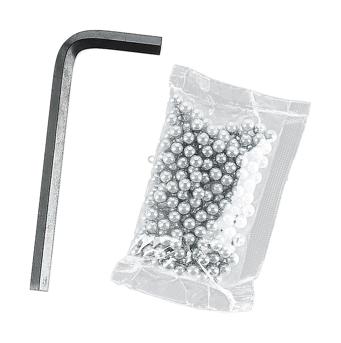 Praktischer Spender mit 1500 Stahlrundkugeln im Kaliber 4,5mm. verzinkt