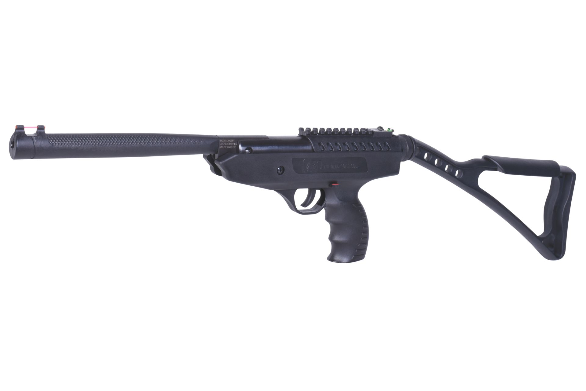 Inspiriert vom US-Luftwaffenstützpunkt Langley hat BO Manufacture eine leistungsstarke Reihe an Luftpistolen auf den Markt gebracht. Das Knicklauf-Modell aus hochfestem Polymer ist einfach zu Spannen und verfügt über einen Verschluss aus Vollmetall. Für Links- & Rechtshänder geeignet Dank breitem Schalldämpfer gut zu greifen und zu spannen Picatinny-Schiene Tiefschwarze Brünierung Einstellbare Fiber-Optik Visierung Gezogener Präzisionslauf PSP™ Performance-Federkolben Einstellbarer Abzug Vollmetall-Verschluss Der Silencer ist bei diesem Modell nicht abnehmbar. System: Knicklauf Munitionstyp: Diabolos Magazinkapazität: 1-schüssig Gewicht: 1.483 g Gesamtlänge: 440 mm Energie: ca. 5,0 Joule Luftdruckwaffen (Luftpistolen und Luftgewehre unter 7,5 Joule) müssen eine -F- Kennzeichnung im Fünfeck haben. Der Erwerb, Besitz und Transport der Waffen ist Volljährigen ohne Waffenschein erlaubt. Sie unterliegen jedoch dem Führverbot (§42 a WaffG).