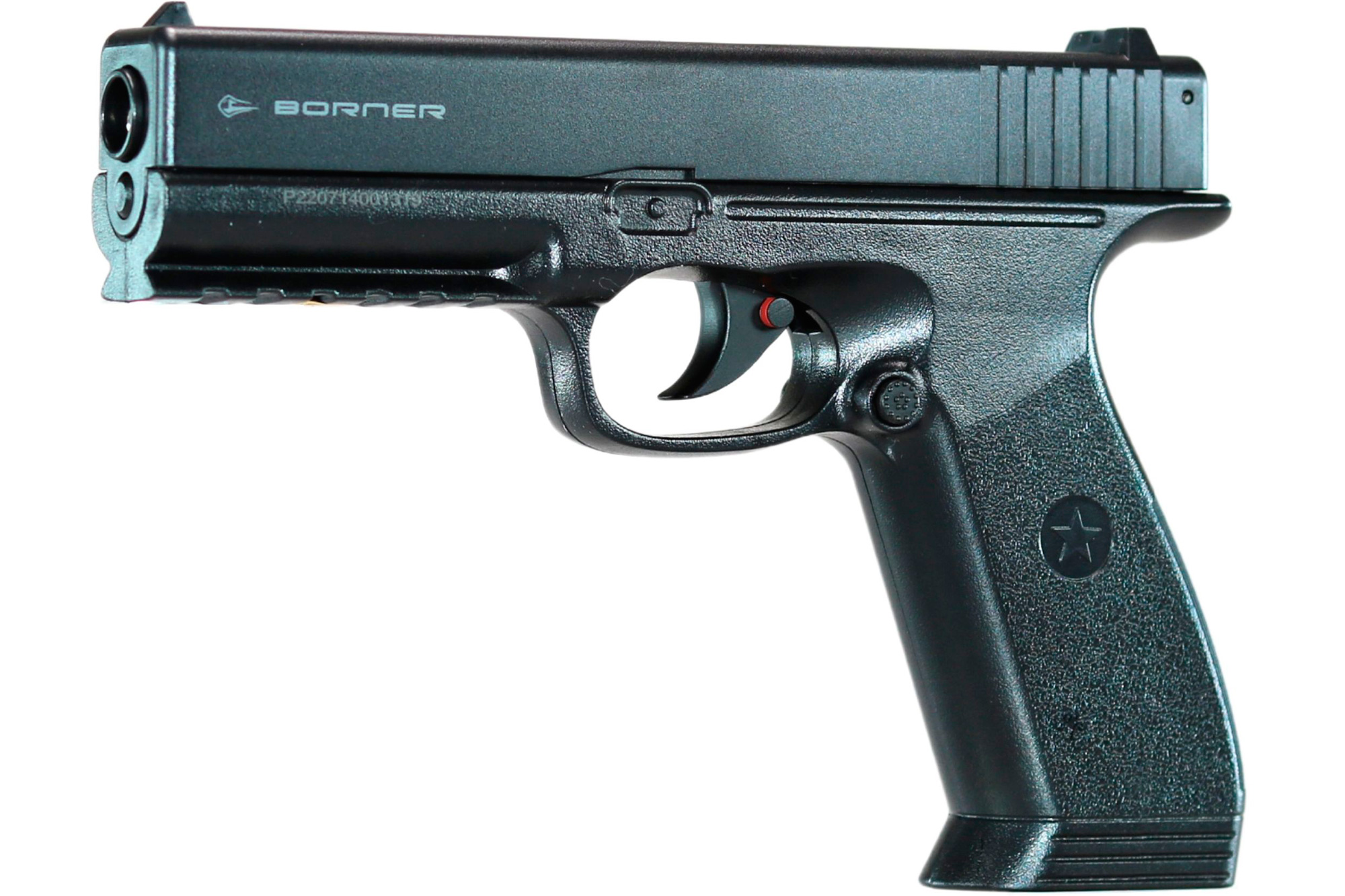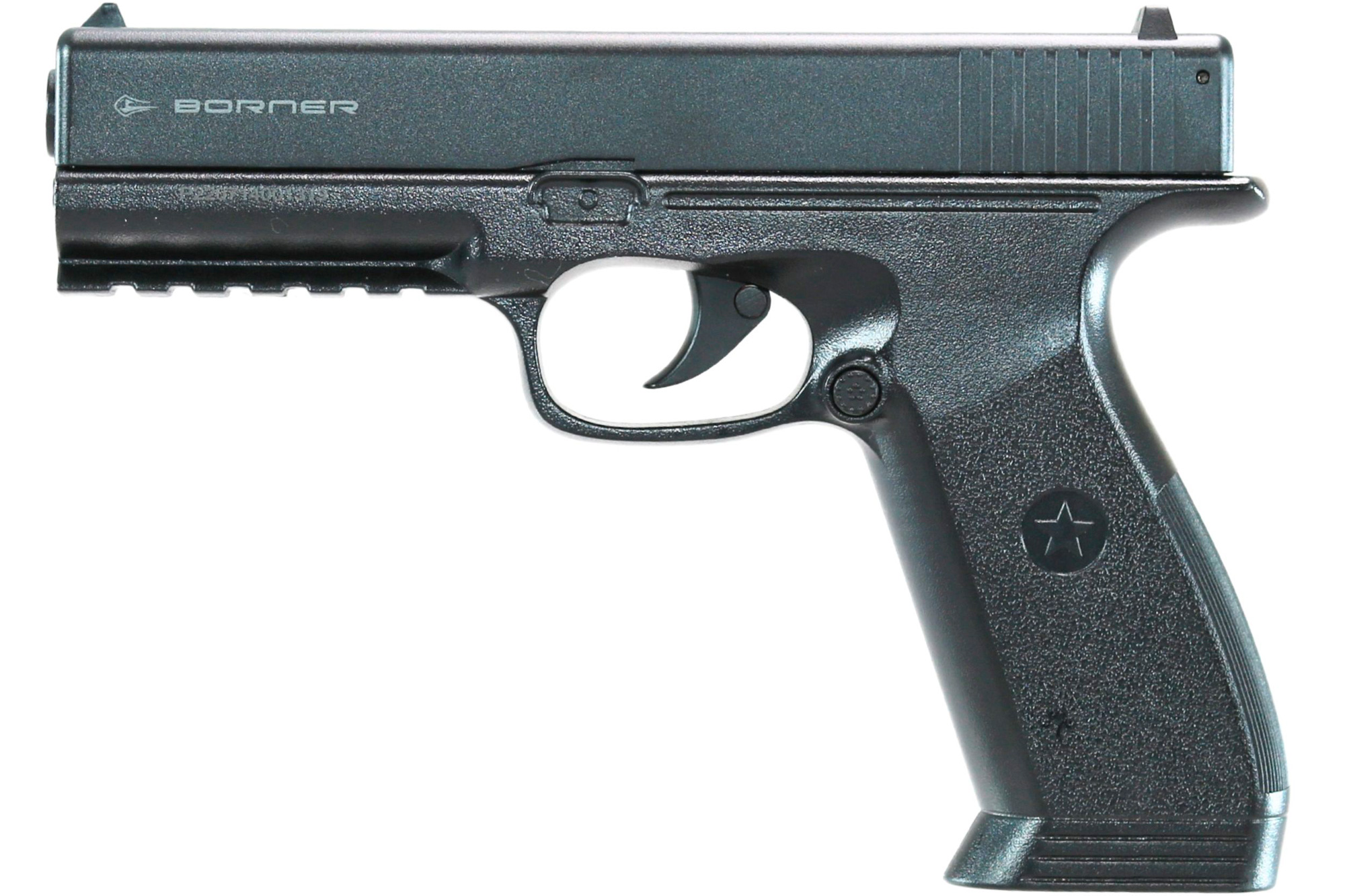 Die CO2 Pistole Borner 17 im Kaliber 4,5 mm (.177) ist eine zuverlässige und preiswerte Wahl für Freizeitschützen und Einsteiger. Mit einer Energiequelle durch 12g CO2-Gaskartuschen bietet sie eine Mündungsenergie von bis zu 3 Joule und erreicht eine beeindruckende Schussgeschwindigkeit von 120 m/s. Die Pistole verwendet 4,5 mm BB-Kugeln und verfügt über ein Magazin mit einer Kapazität von 20 Schuss.