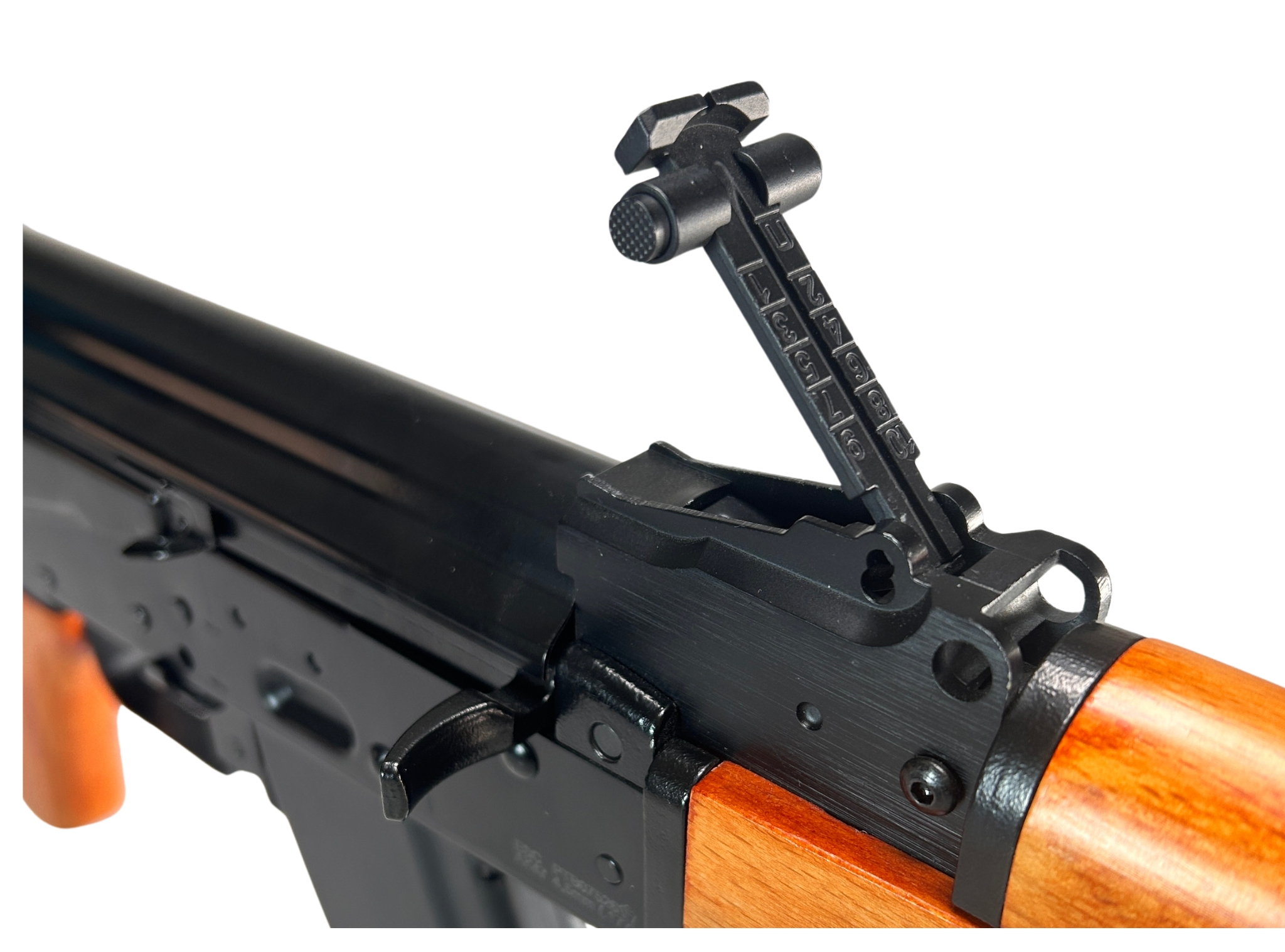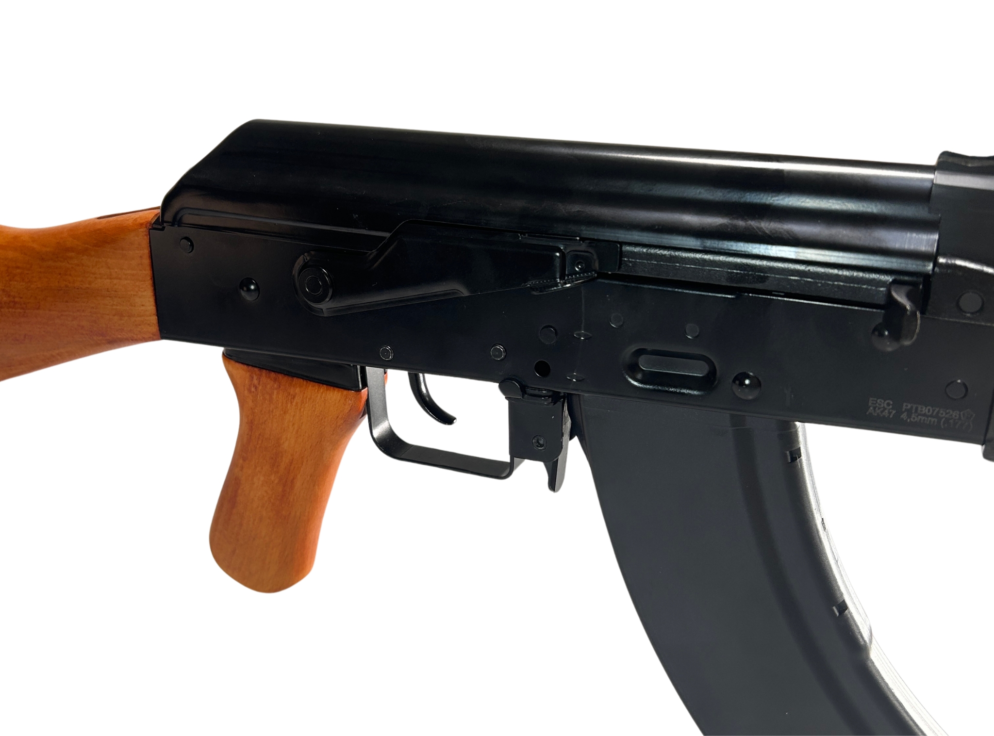 Robuste Metallkonstruktion des Borner AK47 Luftgewehrs und Echtholz!