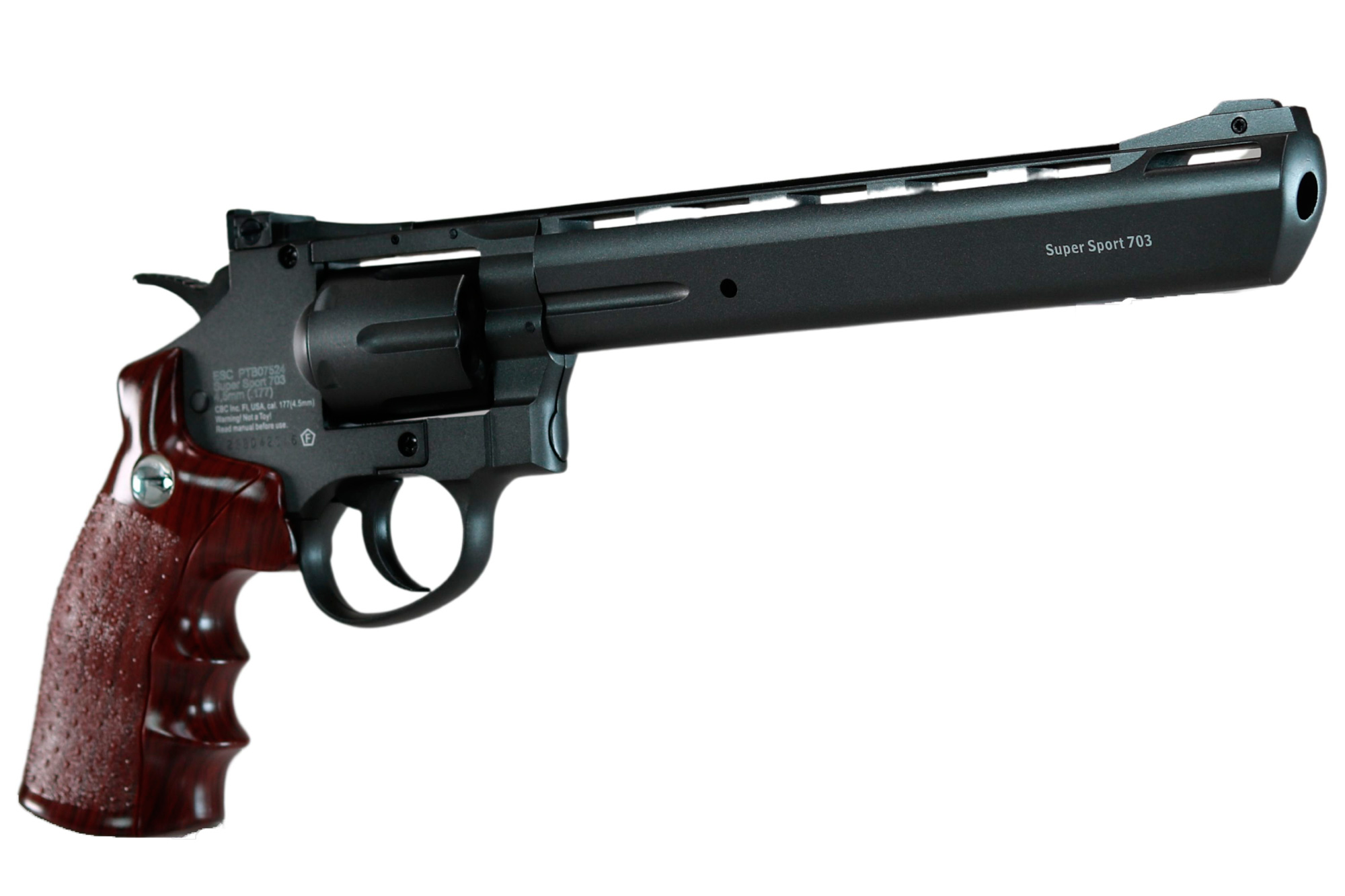 Der CO2 Revolver Borner Super Sport 703 bietet eine authentische Schießerfahrung im Kaliber 4,5 mm (.177) und überzeugt durch sein Full-Metal-Design und eine Holzimitat-Griffschale. Dieser Revolver ist für Sport- und Freizeitschützen bestens geeignet und verfügt über eine doppelte Abzugmechanik, die sowohl Single- als auch Double-Action ermöglicht.