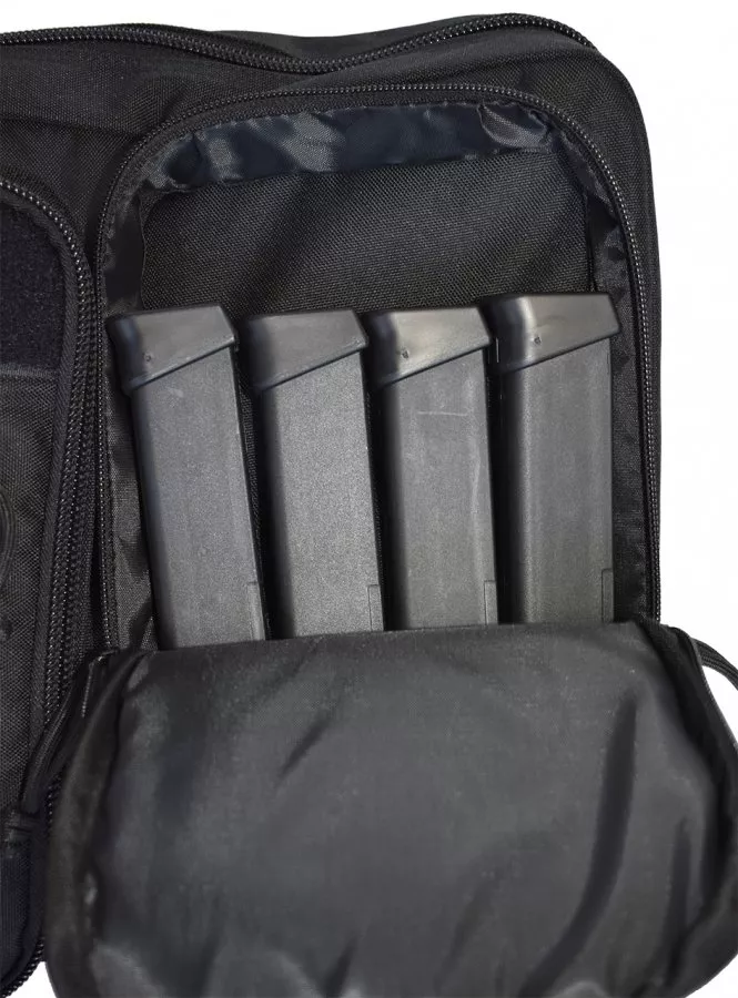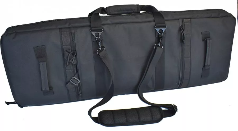 Zwei Gewehre und drei Tragemöglichkeiten – alles in einer großartigen PCC-Gewehrtasche. Stark gepolstert und hervorragend geschützt für Ihre teuren PCC- und AR-Wettkampfgewehre, bietet diese Tasche Platz für zwei Pistolen und jede Menge Magazine.