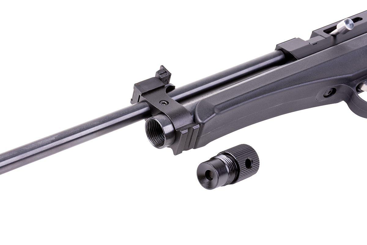 Das DIANA chaser Rifle Set beinhaltet die chaser Pistol, einen Hinterschaft, einen Silencer und einen Gewehrlauf. Es wird mit einer Einzelschuss-Einlage geliefert, kann aber auch mit einem optionalen 9-Schuss Trommelmagazin betrieben werden. Die gefräste Prismenschiene ermöglicht den Anbau einer passenden Optik.
