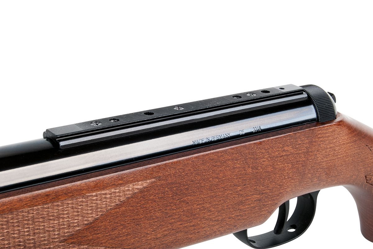 Bewährtes Sport- und Trainingsluftgewehr für Hobby und Freizeit in handlicher und solider Konzeption – mit starker Kolbenfeder und vorzüglicher Schussleistung für die ganze Familie. Automatische Sicherung, matchähnlichem Druckpunktabzug und starrem Korntunnel. Höhen- und seitenverstellbares Mikrometervisier mit vier verschiedenen Kimmenausschnitten. Buchenschaft mit langem, führigem Vorderschaft und beidseitiger Backe, Punzierung am Pistolengriff und Vorderschaft, für Rechts- und Linkshänder, Gummischaftkappe. (Lieferung ohne Zielfernrohr.) Lauf: 395 mm System: Kipplauf mit Federbolzenverschluß Visier: starrer Korntunnel Ausführung: schwarz brüniert, Prismenschiene Abzug: matchähnlicher Druckpunktabzug Schaft: Buche Gesamtlänge: 1.030 mm Gewicht: 3,1 kg Energie: max. 7,5 Joule Kal. 4,5 mm