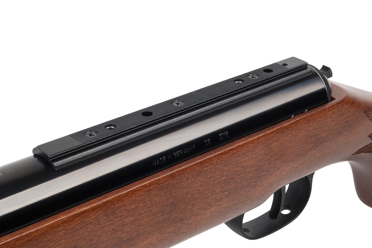 Ein preisgünstiges Luftgewehr für Hobby und Sport mit Unterspannhebel-Technik. Einschüssig, mit Ladetor. Handlich und gut ausbalanciert. Automatische Sicherung, fein einstellbarer Matchabzug „Rekord“, höhen- und seitenverstellbares Mikrometervisier mit vier verschiedenen Kimmenausschnitten, langer, führiger Buchenschaft mit beidseitiger Backe, Punzierung am Pistolengriff und Vorderschaft, für Rechts- und Linkshänder, Gummischaftkappe. (Lieferung ohne Zielfernrohr.) Lauf: 360 mm System: Unterspannhebel Visier: verstellbares Mikrometervisier, Sattelkorn Ausführung: schwarz brüniert, Prismenschiene, automatische Abzugsdruckknopfsicherung, Abzug: Matchabzug Rekord Schaft: Buche mit beidseitiger Backe, Fischhaut, Gummischaftkappe. Gesamtlänge: 1.020 mm Gewicht: 3,2 kg Energie: max. 7,5 Joule Kal.: 4,5mm