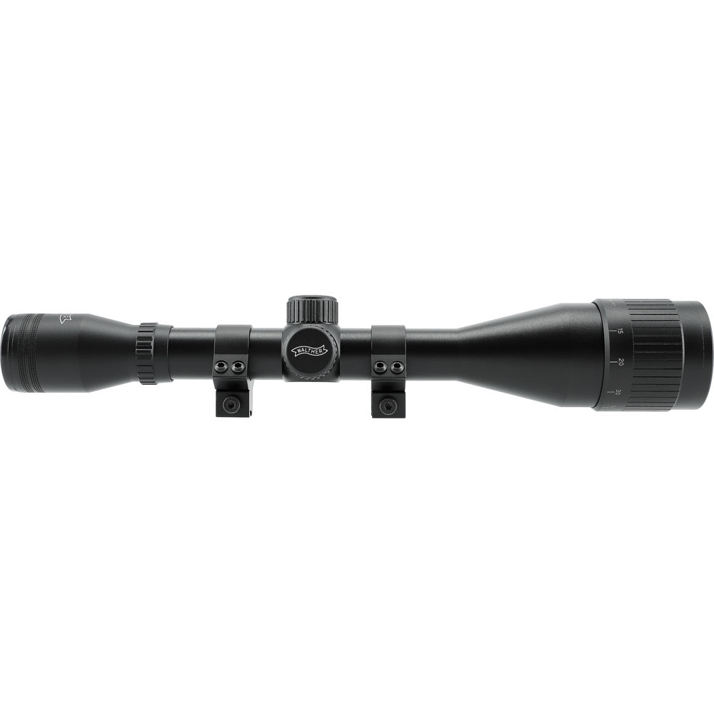 Ein Zielfernrohr der Walther Linie mit variabler Vergrößerung und MilDot Absehen. Der Sonnenschutz verhindert Reflektionen im Zielbild durch Sonneneinstrahlungen. Die Montagebasis ist für 11 mm Prismenschienen vorgesehen. Die Handhabung wird durch den extrem griffigen Verstellring am Okular erleichtert. Ø Objektiv: 44 mm Ø Tubus: 25,4 mm Beleuchtung: nein Absehen: TacDot Parallaxefrei auf: 10 m Schussfestigkeit: .223 Rem Länge: 350 mm Gewicht: 695 gDas Zielfernrohr wird in einem Karton inkl. Montageringe für eine 11mm Schiene ausgeliefert.