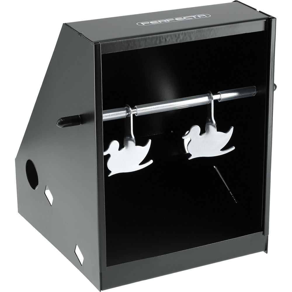 Diana Kugelfangkasten Multi-Fuchs in Ganzstahlausführung mit vier Klappzielen. Bei einem Treffer klappen die Ziele nach hinten. Aufrichten der Figuren erfolgt durch Treffer auf die mittlere Scheibe. Der Kasten lässt sich an einer Wand oder unter der Decke montieren. Geeignet bis max. 12 Joule. Variante: Klappfallziele Material: Stahl Maße: 49 x 22 x 20 cm Gewicht: 5,2 kg