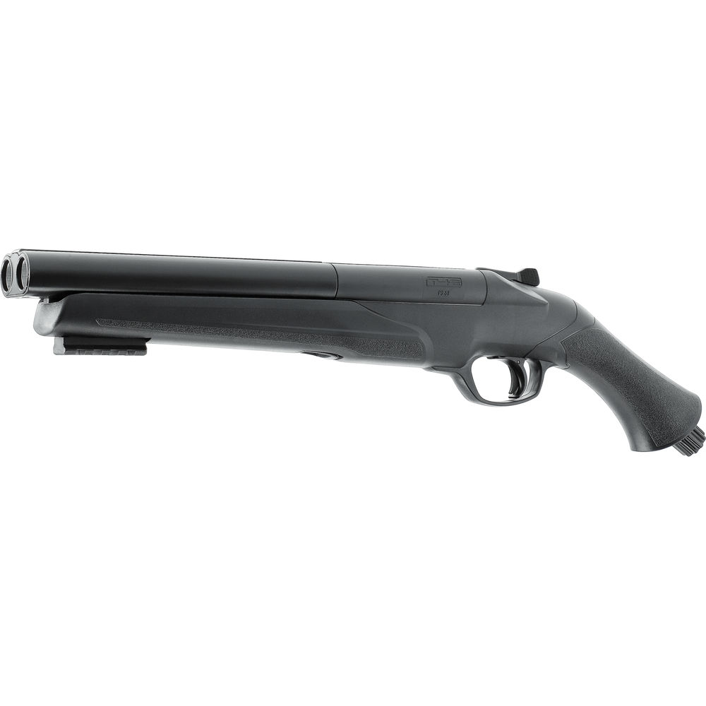 Bei der Tactical Shotgun TS 68 mit Doppellauf spielen Kraft und Schnelligkeit zusammen. Dank „Quick-Piercing-System“ ist die Waffe blitzschnell einsatzbereit: Ein leichter Schlag auf die Unterseite des Griffs sticht die CO₂-Kapsel erst im Ernstfall an. Die sichtbare und spürbare Druckanzeige zeigt die Einsatzbereitschaft immer klar an. Zur Ausstattung der TS 68 gehört eine Picatinny-Schiene unter dem Lauf. Das starke Kaliber .68 bietet eine reiche Auswahl an Munitionssorten als Rundkugeln oder Precisionballs – wahlweise einzeln oder aus beiden Läufen gleichzeitig abgefeuert.