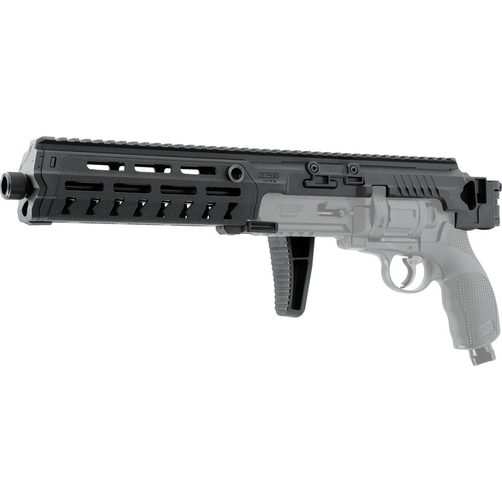 Dieser eindrucksvolle Anschlagschaft steigert die Einsatzmöglichkeiten der T4E TR 50-Modelle, indem er dem eingesetzten Revolver die überlegene Ergonomie und Zubehör-Kompatibilität kompakter Langwaffensysteme verleiht.