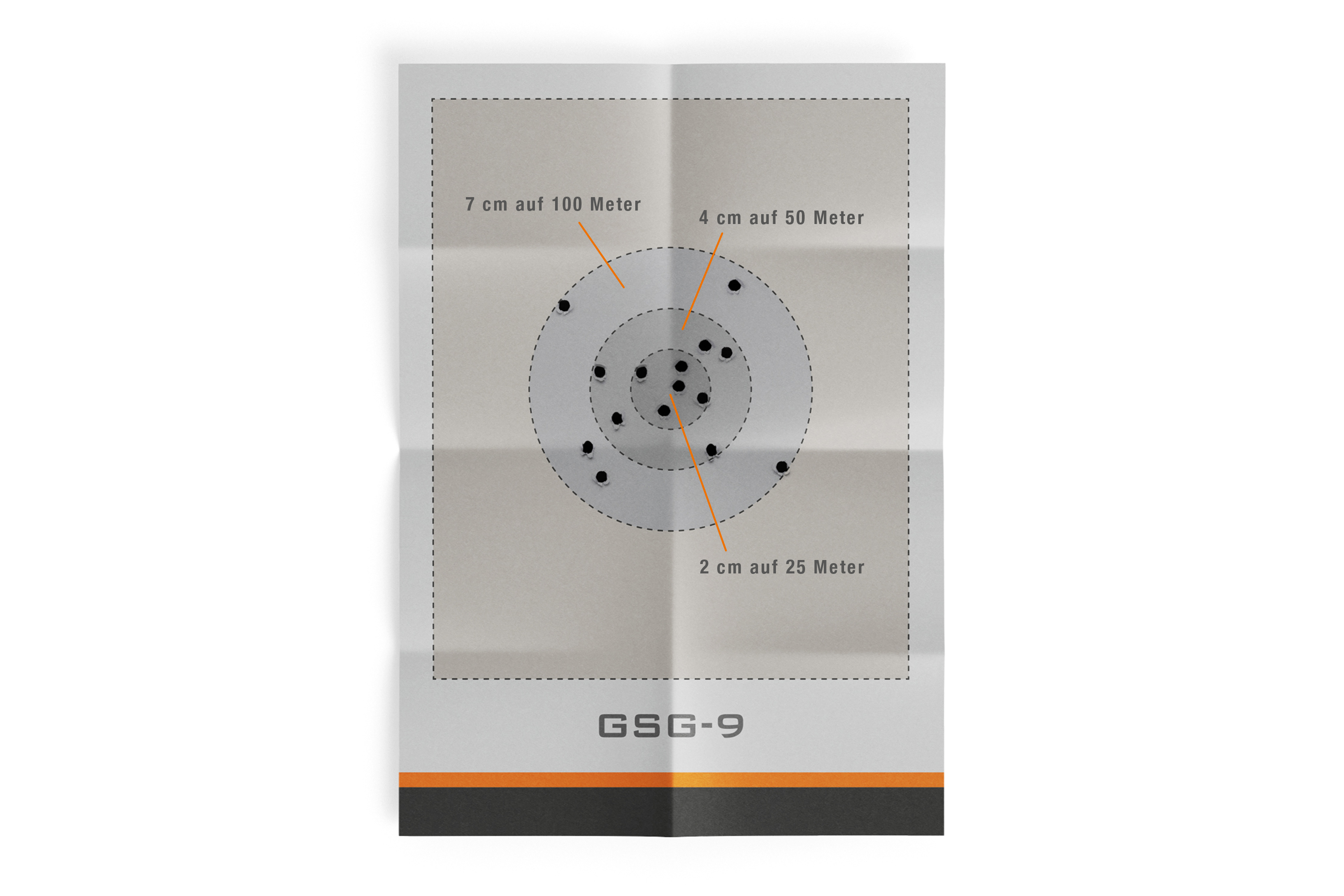 Die GSG-9 zeichnet sich durch ihre außergewöhnliche Schießpräzision aus. Auf einer Distanz von 25 Metern liegt der Streukreis im Mittel bei nur 2 cm, was auf eine hervorragende Zielgenauigkeit hinweist. Auf 50 Metern weitet sich der Streukreis minimal auf 4 cm aus, während auf 100 Metern die Streuung mit 7 cm immer noch beeindruckend gering bleibt.
