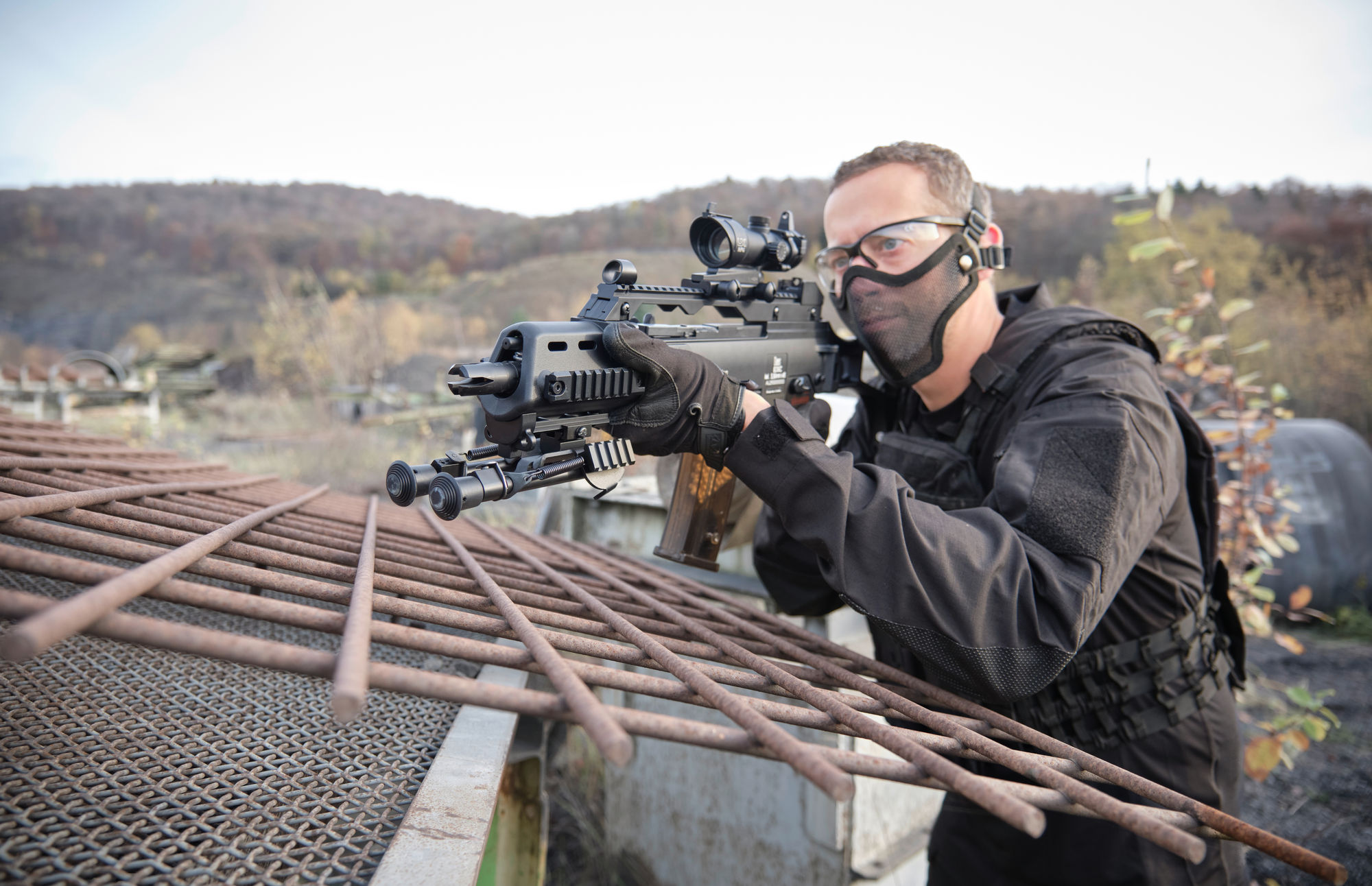 Heckler & Kochs moderne Compact-Version, mit Metall-Gear-Box, 470 Schuss, max. 1,3 Joule Kaliber: 6 mm BB Antrieb: elektrisch Magazinkapazität: 470 Schuss Sicherung: Feuerwahlhebel Energiestufe: < 1,0 J Shoot-Up: einstellbar Gearbox: Version 3 MOD Empfohlene BBs: 0,20 g Länge: 720 mm Gewicht: 2850 g