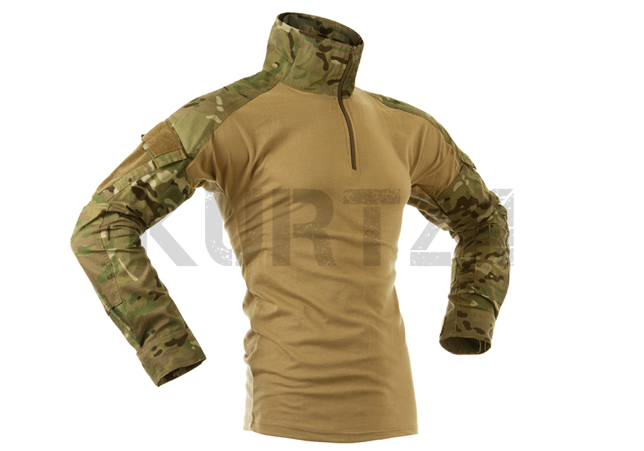 Das Combat Shirt von Invader Gear überzeugt mit einem sehr attraktiven Preis-Leistungsverhältnis und einem hohen Qualitätsstandard. Das Shirt wird insbesondere unter einem Plattenträger getragen um Druckstellen zu vermeiden und um einen idealen Schweisstransport von der Haut weg sicherzustellen. Der moderne Schnitt sorgt für eine gute Bewegungsfreiheit und ist nicht zu eng anliegend, aber auch nicht zu weit gewählt. Der Kragen ist mit einem Reissverschluss von YKK ausgestattet und kann sowohl offen als auch geschlossen getragen werden. Beide Ärmel sind mit einer Oberarmtasche ausgestattet, diese sind schräg aufgenäht um einen schnelleren Zugang zu gewährleisten. Die Taschen sind des weiteren auch mit einer Klettfläche ausgestattet um ID Patches anbringen zu können. Der Ellbogen wurde mit einer zweiten Stoffschicht verstärkt, diese Verstärkung dient gleichzeitig auch als Einschubfach für einen Ellbogenschoner. Der linke Ärmel ist zusätzlich mit einem praktischen Einschubfach für Schreibzeug ausgerüstet. Die Weite des Ärmelabschlusses kann mittels Klettverschluss individuell verstellt werden. Die Ärmel, der Kragen und der Schulterbereich bestehen bei diesem Combat Shirt aus einem robusten Rip-Stop Gewebe aus 65% Baumwolle und 35% Polyester. Während der vergleichbar hohe Baumwollanteil für ein sehr angenehmes Traggefühl sorgt, ist der Polyesteranteil für ein schnelles Trocknen und zusätzliche Robustheit zuständig. Der Torsobereich besteht aus Strickware mit 80% Baumwoll- und 20% Polyesteranteil, auch hier sorgt die Baumwolle für einen herausragenden Komfort, während das Polyester für eine bessere Performance sorgt. Ärmel und Kragen aus Mischgewebe 65% Baumwolle, 35% Polyester Torso aus 80% Baumwolle, 20% Polyester Reissverschluss von YKK Versandgewicht: 420 g