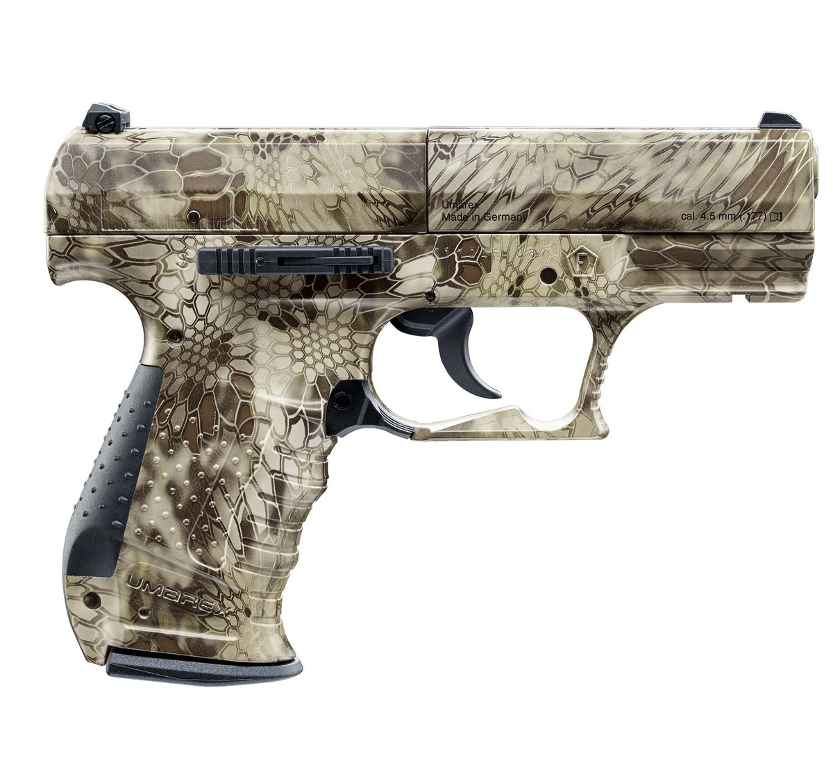 Die Buck Mark URX ist ein originalgetreuer Nachbau der gleichnamigen cal. .22 Pistole von Browning. Der speziell für die Buck Mark entwickelte Griff bietet ein Höchstmaß an Ergonomie und kann sowohl von Rechts- als auch Linkshändern benutzt werden. Er sorgt für einen gleichbleibenden Griff bei jedem Schuss und fördert so die Präzision des Schützen. Die Kimme ist einstellbar. Eine Picatinny-Schiene ermöglicht die Montage verschiedener Zieloptiken. Vollmetall-Bauweise. Authentische Replika in Vollmetall-Bauweise Ergonomisches Design Picatinny-Schiene Einstellbare Kimme Energiestufe (E₀): < 3,0 J Geschossgeschwindigkeit (V₀): 95 m/s (312 fps) Kaliber: 4,5 mm (.177) Diabolo Antrieb: Federdruck Sicherung: Schwenksicherung Länge: 305 mm Gewicht: 680 gDie Luftpistole wird in einem Karton inkl. Bedienungsanleitung ausgeliefert.