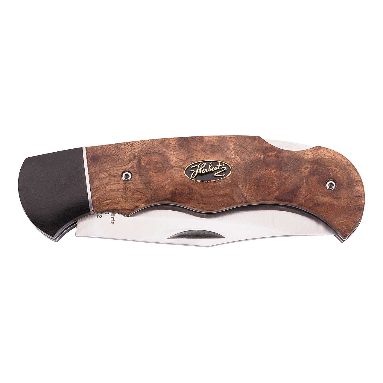 • Die feststellbare Klinge wird aus rostfreiem Stahl 420 gefertigt, das Heft ist mit einer Wurzelholzkombination ausgestattet.