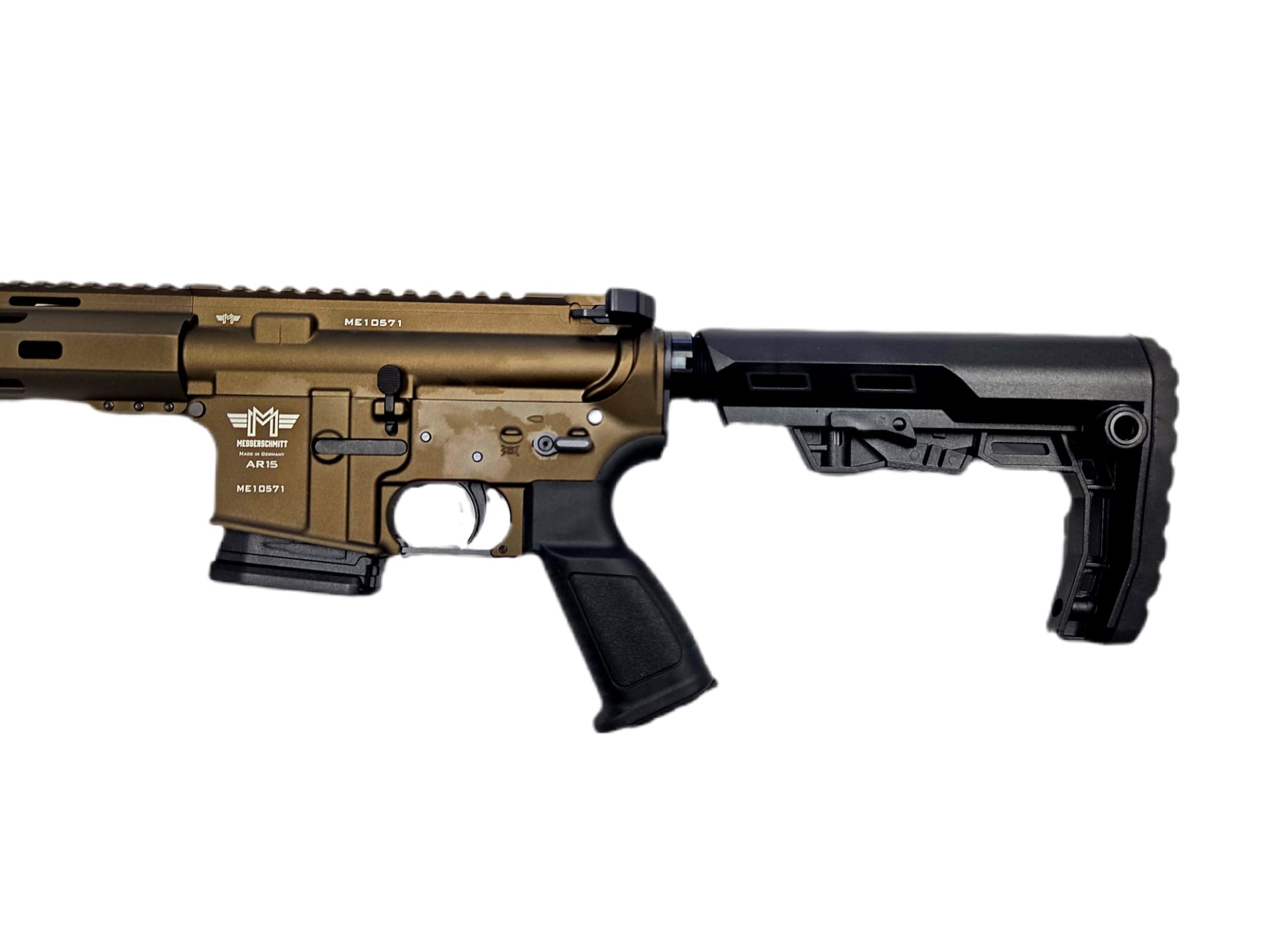 Messerschmitt AR15 – Zuverlässig. Modular. Für Performance gemacht. Das Messerschmitt AR15 ist ein modernes, leistungsstarkes Selbstladegewehr, entwickelt für die Ansprüche von Sportschützen und ambitionierten Anwendern. Mit höchster Präzision gefertigt und nach deutschen Standards konstruiert, überzeugt es durch herausragende Zuverlässigkeit, sanftes Handling und konstante Präzision. Das Gewehr verfügt über eine leichte, gleichzeitig robuste Bauweise, einen freischwingenden Lauf sowie volle Modularität mit Standardkomponenten der AR-Plattform. Ob auf dem Schießstand oder im Wettkampf – das Messerschmitt AR15 bietet Präzision, Kontrolle und ein unschlagbares Preis-Leistungs-Verhältnis. System: Gas operated direct impingement Upper und Lower: Forged 7075 T6 Aluminium, MilSpec; hard anodized schwarz Lauf: Free floating 10,5″ Chrome Moly Lauf Drall: 1:9 „ Mündung: 1/2×28 UNEF mit NATO A2 Bird Cage Handschutz: Slim M-Lok Handguard mit Picatinny top rail Gas System: .750 standard Gasblock (nicht einstellbar), Carbine length gas tube Abzug: Single Stage MilSpec Abzug ( 6- 7 lbs) Beidseitig bedienbarer Charging Handle Beidseitig bedienbarer Safety Selector Standart MilSpec Mag release Standart MilSpec Bolt catch MilSpec Carbine Buffer tube