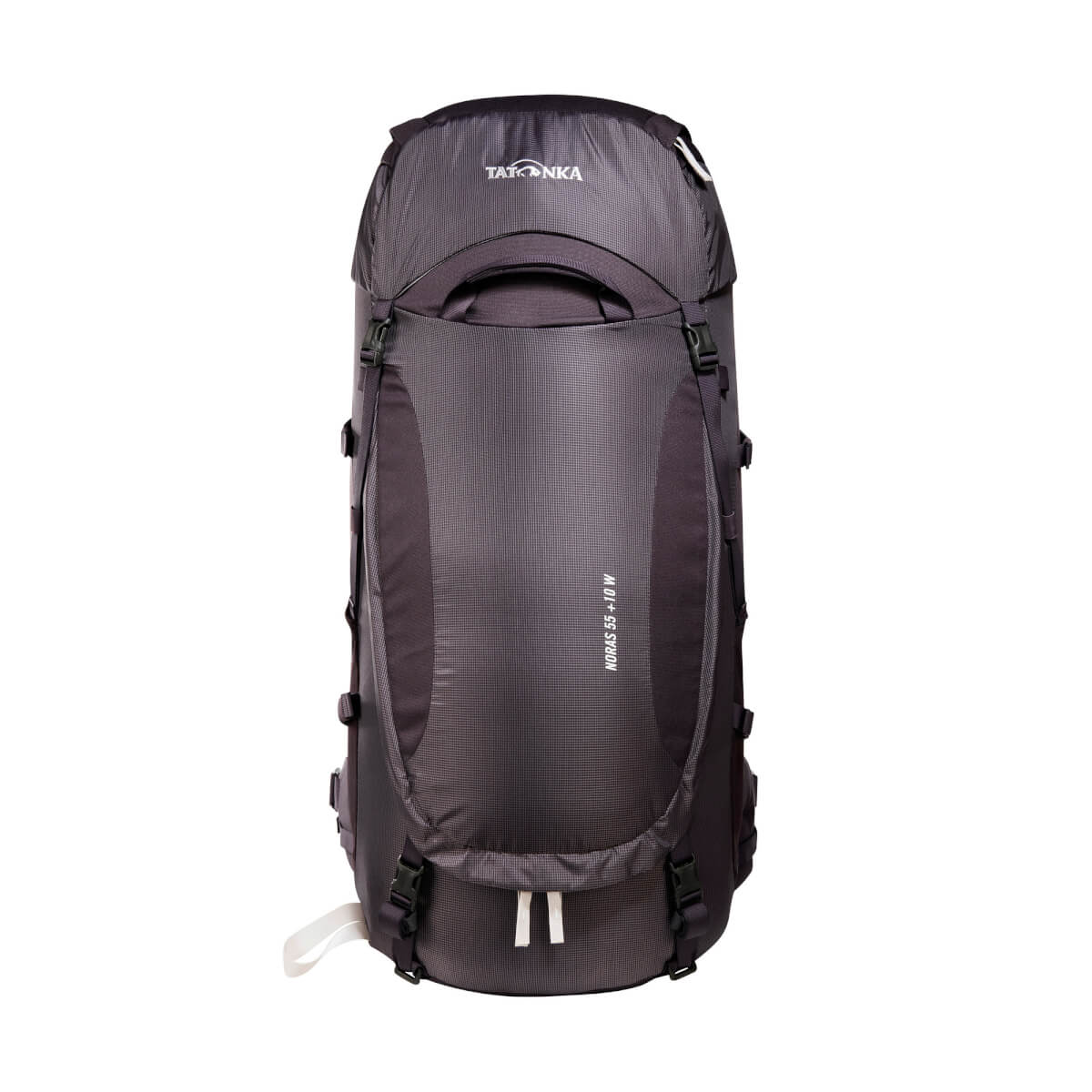 Tatonka Trekkingrucksack Noras 55+10 Women für Damen Der Damen-Rucksack Noras 55+10 Women ist ein robuster Trekkingrucksack mit einem an die weibliche Anatomie angepassten Tragesystem. Ausgelegt ist er für Lasten bis 20 Kilogramm. Der Rucksack eignet sich für Trekking- und Backpacking-Touren genauso wie als Reiserucksack. Backpacker-Rucksack mit verstellbarem Damen-Tragesystem Stärker geschweifte Schulterträger und eine kürzere Rückenkonstruktion bieten Frauen mehr Bequemlichkeit. Wie bei allen Trekking- und Tourenrucksäcken von Tatonka kann das Tragesystem an die eigene Rückenlänge angepasst werden, so dass die Last optimal in den Hüftbereich übertragen wird. Der Rucksack ist in Haupt- und Bodenfach unterteilt, bietet Seitentaschen und einen höhenverstellbaren Deckel. Die große Reißverschlussöffnung auf der Front macht das Packen sehr bequem. Der Rucksack ist PFC/PFAS-frei ausgerüstet. Y1-Tragesystem WomenSchneefang mit zwei Schnürzügen unter dem DeckelUnterteilung in Hauptfach und BodenfachWanderstockhalterungGepolsterte Schultergurte mit frauenspezifischem SchnittLastkontrollriemenHöhenverstellbarer BrustgurtGepolsterter HüftgurtUmgelenkter Hüftgurt-ZugAm Hüftgurt kann bei Bedarf unsere Hip Belt Pouch (Art. 1340) befestigt werdenSeitliche KompressionsriemenUmlaufende BodenkompressionHandgriff vorn und hintenDeckelfach mit SchlüsselhalterungHöhenverstellbarer, abnehmbarer DeckelTrinksystemvorbereitungSeitliche NetztaschenGroße Frontöffnung für leichten ZugriffVerwendung von recycelten MaterialienPFC/PFAS-freie Imprägnierung