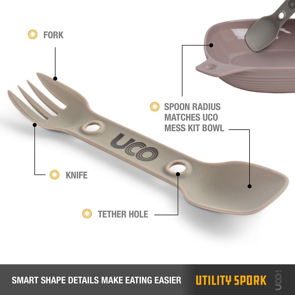 - Oft als "Three in One" bezeichnet, ist der Utility Spork alles andere als ein Kompromiss.