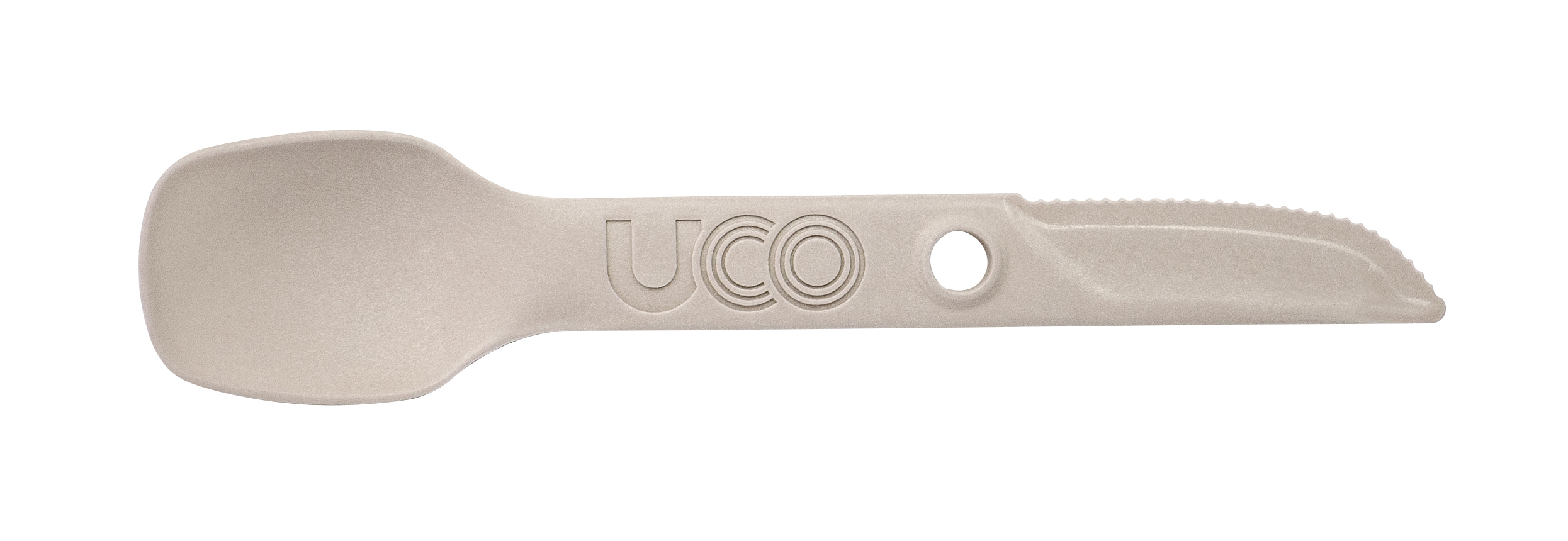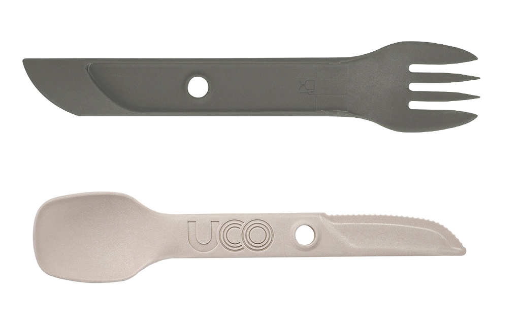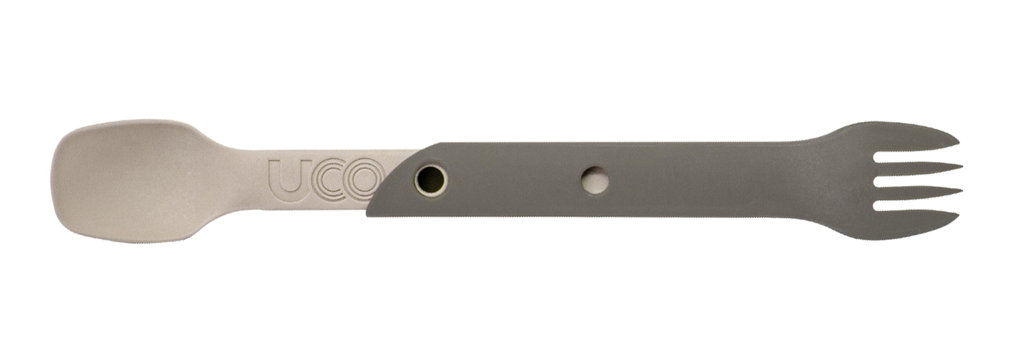 Ein praktisches Besteckset, kombinierbar in drei Varianten (Messer, Gabel, Löffel). Ausziehbar zu einem extra langen Untensil, ideal für tiefwandige Essensbehälter. Ein Loch dient zur Befestigung des Spork am Rucksack oder an der Tasche. Der Spork ist spülmaschinefest und mit Befestigungsschlaufe.