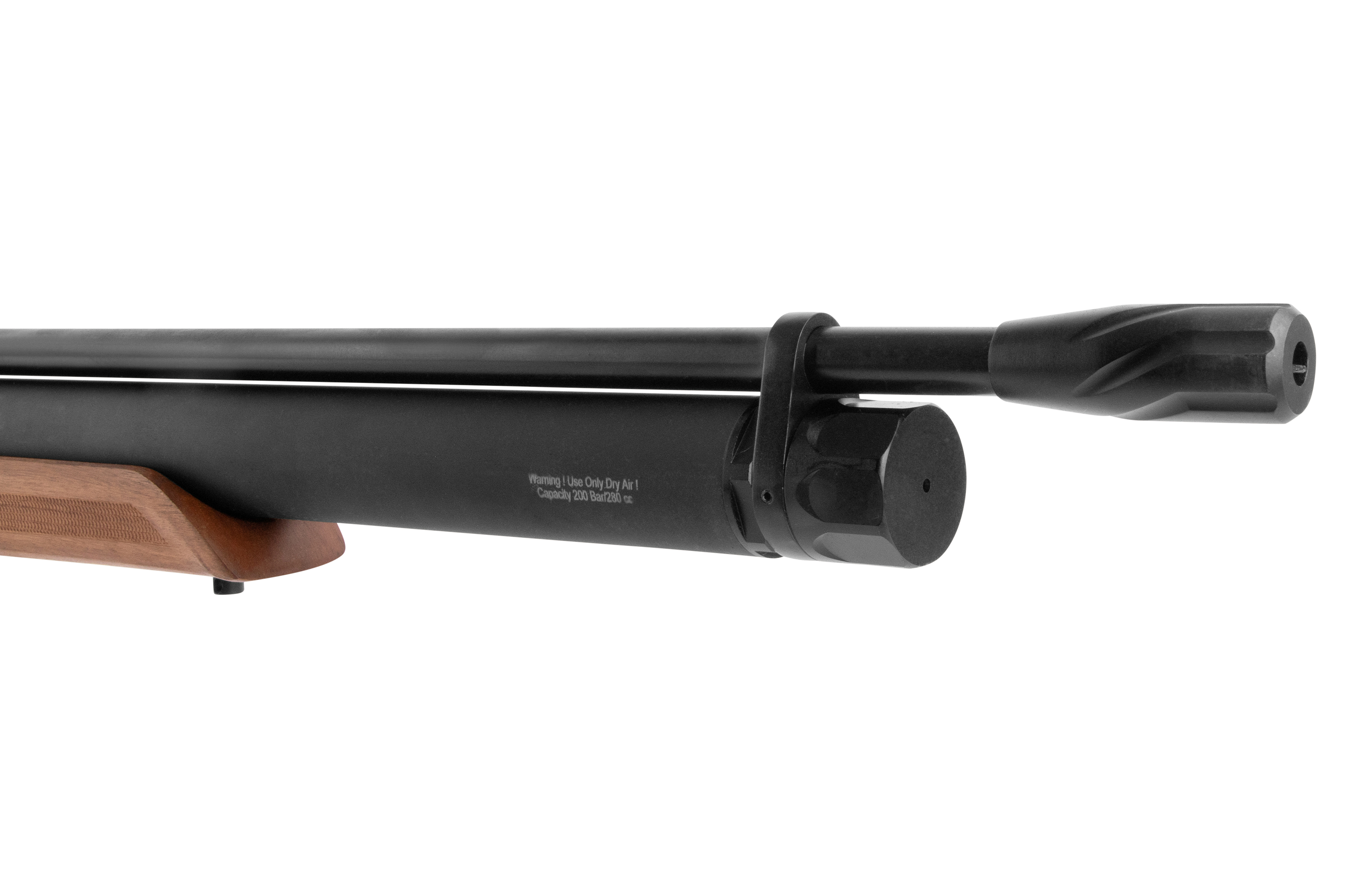 Die Walther-Kartusche kann direkt angeschlossen und mit bis zu 230 bar Pressluft befüllt werden. 90% des Feuchtigkeitsgehaltes und 99% der schädlichen Partikel werden ausgefiltert.