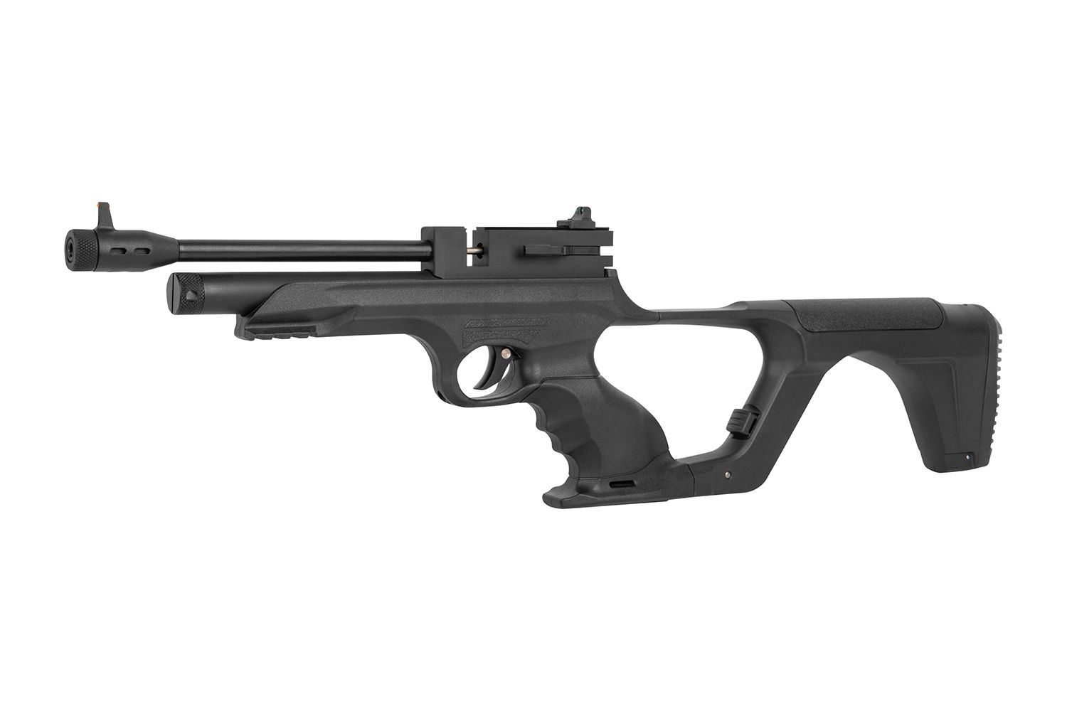 Inspiriert vom US-Luftwaffenstützpunkt Langley hat BO Manufacture eine leistungsstarke Reihe an Luftpistolen auf den Markt gebracht. Das Knicklauf-Modell aus hochfestem Polymer ist einfach zu Spannen und verfügt über einen Verschluss aus Vollmetall. 30 cm langer Lauf mit strukturiertem Griff zum leichteren Spannen Für Links- & Rechtshänder geeignet Einfach abnehmbarer Hinterschaft Picatinny-Schiene Tiefschwarze Brünierung Offene Fiber-Optik Visierung Gezogener Präzisionslauf PSP™ Performance-Federkolben Einstellbarer Abzug Vollmetall-Verschluss Kaliber: 4,5 mm (.177) System: Federdruck | Knicklauf Magazinkapazität: 1 Schuss Montageschiene: 22mm Picatinny Abzug einstellbar: Ja Laufgewinde: Ohne Visierung: Fiber Optik Optic Ready: Nein Schaftmaterial Waffen: Kunststoff Griffstück: Kunststoff Verschluss: Metall Energie: < 7,5 Joule Farbe: Schwarz Gewicht: 1.900 g Gesamtlänge: 535-825 mm