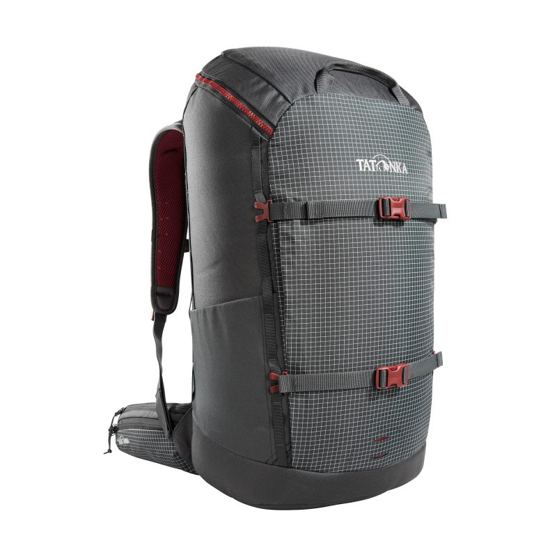 Tatonka Trekkingrucksack Noras 65+10 für Lasten bis 20 Kilogramm Der robuste Trekkingrucksack Tatonka Noras 65+10 ist ein zuverlässiger Begleiter auf Trekkingtouren und Backpacking-Trips, und er eignet sich auch sehr gut als Reiserucksack. Verstellbares Y1-Tragesystem für Lasten bis 20 Kilogramm Der Rucksack trägt sich komfortabel in einem Lastbereich bis 20 Kilogramm. Wie bei allen Trekking- und Tourenrucksäcken von Tatonka lässt sich das Tragesystem an die eigene Rückenlänge anpassen. Dann überträgt es die Last optimal in den Hüftbereich, und Schultern und Rücken werden entlastet. Backpacker-Rucksack mit großer Reißverschluss-Frontöffnung Damit man unterwegs schnellen Zugriff auf das Gepäck hat, ist der Trekkingrucksack mit einer großen Reißverschlussöffnung auf der Front versehen. Er bietet einen unterteilten Packsack, einen höhenverstellbaren Deckel, und geräumige Seitentaschen.Der Rucksack ist PFC/PFAS-frei ausgerüstet. Y1-TragesystemSchneefang mit zwei Schnürzügen unter dem DeckelUnterteilung in Hauptfach und BodenfachWanderstockhalterungErgonomisch geformte, gepolsterte SchultergurteLastkontrollriemen Höhenverstellbarer BrustgurtGepolsterter HüftgurtUmgelenkter Hüftgurt-Zug Am Hüftgurt kann bei Bedarf unsere Hip Belt Pouch (Art. 1340) befestigt werdenSeitliche KompressionsriemenUmlaufende Bodenkompression Deckelfach mit SchlüsselhalterungHöhenverstellbarer, abnehmbarer Deckel Trinksystemvorbereitung Seitliche Netztaschen Große Frontöffnung für leichten Zugriff Verwendung von recycelten Materialien PFC/PFAS-freie Imprägnierung