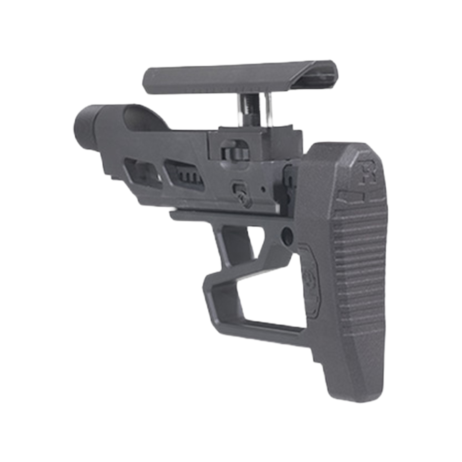 Der Hinterschaft ist kompatibel mit allen früheren Generationen der Ruger Precision Rifle sowie mit anderen Waffen mit MIL-SPEC Aufnahmen. Er besteht aus Stahl, Aluminium und Nylon mit Hartschicht-Eloxal- und Nitrid-Beschichtungen für Stärke und Haltbarkeit, wiegt 817 g und hat weder scharfe Kanten noch Ecken, was den Komfort erhöht.