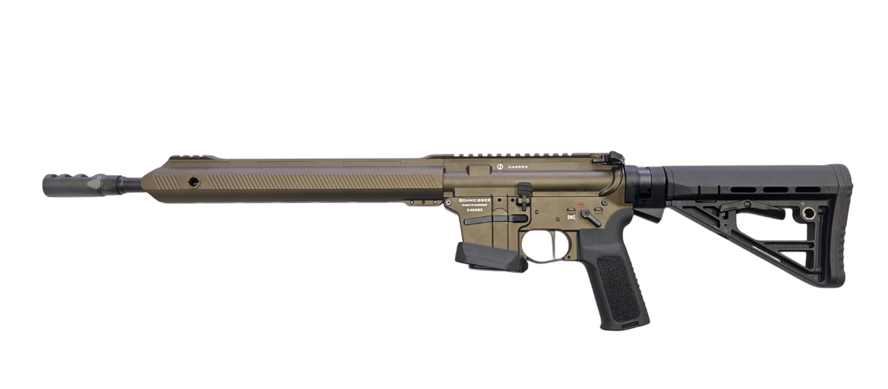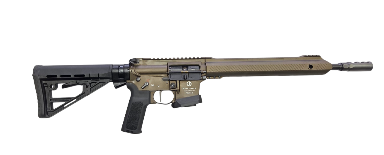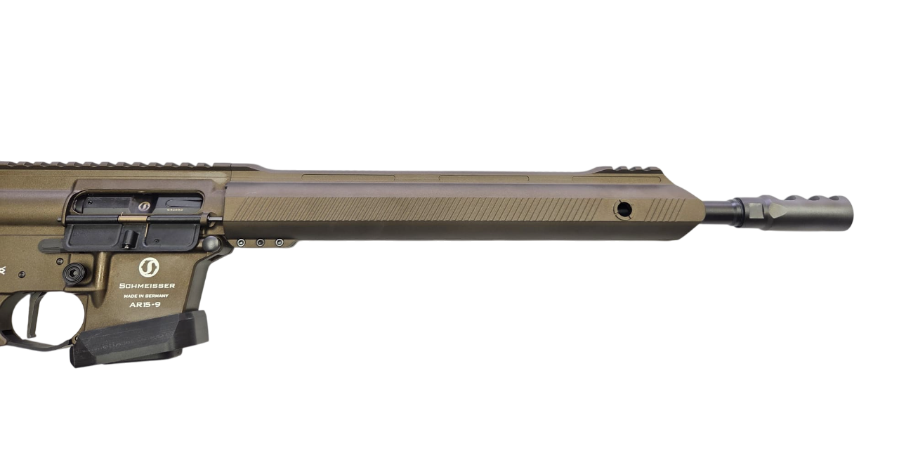 Kategorie: Langwaffen - SelbstladebüchsenKaliber: 9mm LugerZustand: neuBeschreibungAufgrund vielfacher Nachfragen nach einem verlässlichen AR15 9mm System, freuen wir uns Ihnen nun, nach langer Entwicklungszeit unsere Schmeisser AR15-9 Produktreihe präsentieren zu dürfen. Die neue Schmeisser AR15-9 ist komplett beidseitig bedienbar, des Weiteren wurden die Zuführung, sowie der Masseverschluss optimiert. Egal für welche Anforderungen, statisch oder dynamisch, mit der Schmeisser AR15-9 haben Sie die ideale Waffe in der Hand.Jetzt NEU auch in der sportlichen Konfiguration (BKA Bescheid) mit Schubschaft und NoRec Kompensator.Art: SelbstladebüchseKaliber 9×19Lauflänge: 267 mm / Drall: 1:10Gesamtlänge: 693 mm eingeschoben, 769 mm ausgezogenGewicht: 3.040 gSicherung: beidseitige 45° Sicherung.Farbe: Schwarz/Burnt Bronze/ OD Green LieferumfangWaffenkoffer inkl. ZahlenschlossReinigungsset inkl. BürsteBedienungsanleitung10 Schuss Magazin ACHTUNG: Zum Kauf dieses Produkts ist die Vorlage der Erwerbsberechtigung erforderlich !!!