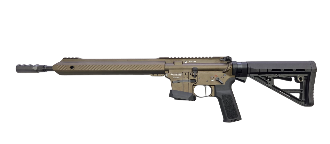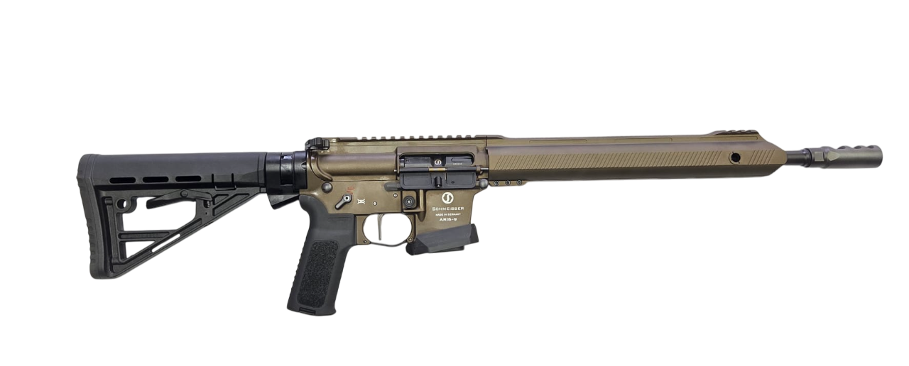 Kategorie: Langwaffen - SelbstladebüchsenKaliber: 9mm LugerZustand: neuBeschreibungAufgrund vielfacher Nachfragen nach einem verlässlichen AR15 9mm System, freuen wir uns Ihnen nun, nach langer Entwicklungszeit unsere Schmeisser AR15-9 Produktreihe präsentieren zu dürfen. Die neue Schmeisser AR15-9 ist komplett beidseitig bedienbar, des Weiteren wurden die Zuführung, sowie der Masseverschluss optimiert. Egal für welche Anforderungen, statisch oder dynamisch, mit der Schmeisser AR15-9 haben Sie die ideale Waffe in der Hand.Jetzt NEU auch in der sportlichen Konfiguration (BKA Bescheid) mit Schubschaft und NoRec Kompensator.Art: SelbstladebüchseKaliber 9×19Lauflänge: 267 mm / Drall: 1:10Gesamtlänge: 693 mm eingeschoben, 769 mm ausgezogenGewicht: 3.040 gSicherung: beidseitige 45° Sicherung.Farbe: Schwarz/Burnt Bronze/ OD Green LieferumfangWaffenkoffer inkl. ZahlenschlossReinigungsset inkl. BürsteBedienungsanleitung10 Schuss Magazin ACHTUNG: Zum Kauf dieses Produkts ist die Vorlage der Erwerbsberechtigung erforderlich !!!