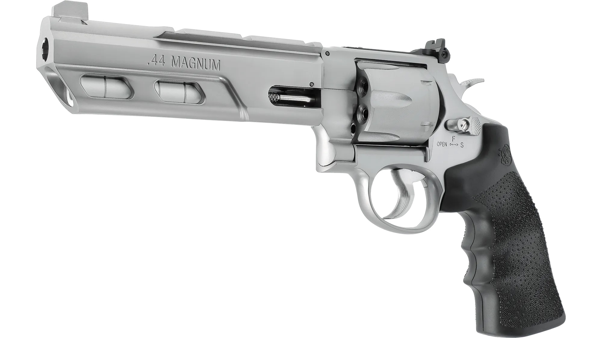 Die legendären .44 Magnum-Revolver der 629-Serie bestechen aufgrund ihres eindrucksvollen Designs und ihrer erstklassigen Qualität. Der massive Smith & Wesson 629 Competitor hebt das Erscheinungsbild durch den Laufmantel mit einsetzbaren Laufgewichten auf ein neues Level.
