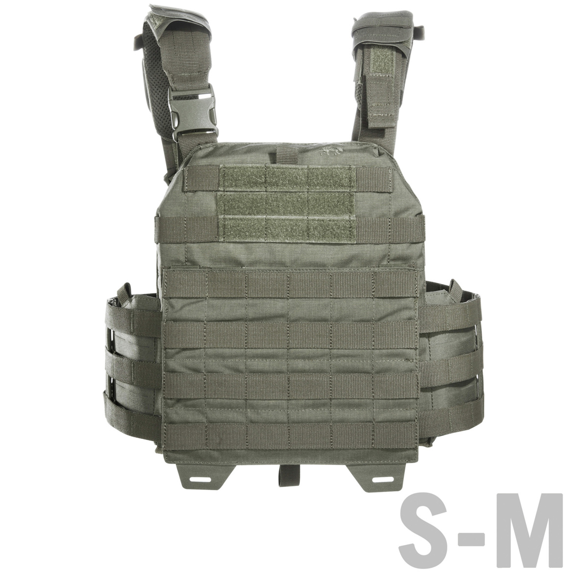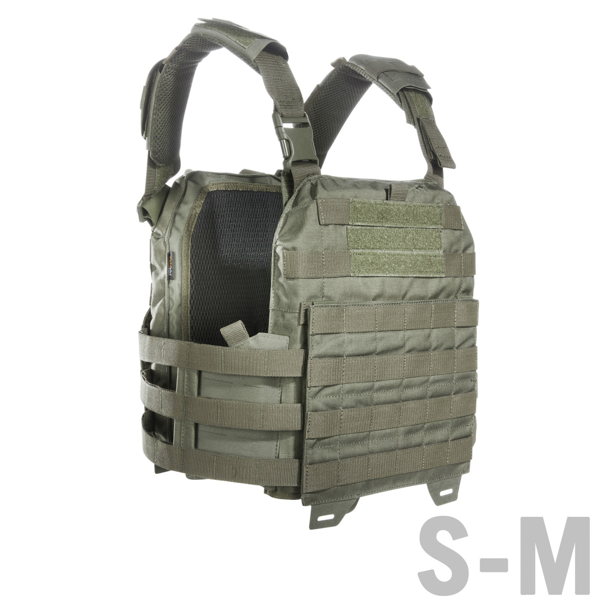 Die Größe 1 entspricht S/M und eignet sich für SAPI-Platten (30 x 25 cm). Die Größe 2 entspricht L/XL und eignet sich für SAPI-Platten von 30 x 25 cm bis 34 x 33 cm. Der Plattenträger besitzt ein flexibles Abwurfsystem und ist für schnelles Anziehen mit einer SR-Schließe versehen, die rechts oder links montiert werden kann.