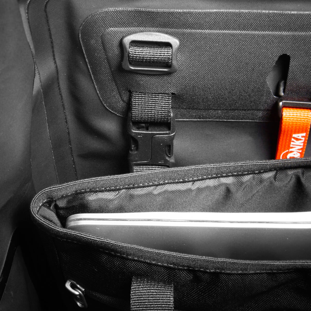 Commuter Rolltop 25 WP Fahrrad-Rucksack Wasserdicht verschweißter Fahrrad-Rucksack mit Rollverschluss: Tatonka Commuter Rolltop 25 WPPerfekt für Fahrradpendler ist dieser robuste Kurier-Rucksack mit wasserdichtem Rollverschluss und verschweißten Nähten, die keine Nässe durchlassen. So ist auch empfindliches Equipment bei jedem Wetter gut geschützt.Gepolstertes Rückensystem für angenehmes TragenDer Commuter Rolltop 25 WP bietet ein gut gepolstertes, ergonomisches Tragesystem, wobei die Rückenpolsterung auf der Außenseite des Rucksacks an- bzw. eingeklettet ist. Somit ist die vollständige Wasserdichtigkeit des Packsacks gewährleistet. (Bei vielen Konkurrenzprodukten ist die Rückenpolsterung mit dem Packsack verschraubt oder sie ist sehr sparsam ausgeführt.) Mit Brust- und Bauchgurt kann der Rucksack fest fixiert werden und sitzt auf dem Fahrrad bombenfest am Rücken.Herausnehmbare, gepolsterte LaptoptascheFür den Transport des Laptops ist ins Hauptfach des Commuter Rolltop 25 WP eine gepolsterte Laptoptasche eingeklettet, diese kannst du auch herausnehmen. Der Rucksack bietet außerdem ein flaches, wasserdichtes Frontfach, und an den Seiten sind Lasercut-Elemente aufgeschweißt. Hier kannst du, zum Beispiel mit elastischen Bändern, zusätzliche Ausrüstung befestigen.Auf der Rucksackfront und an den Schultergurten befinden sich reflektierende Elemente.• Vent Comfort-Tragesystem • Ergonomisch geformte, gepolsterte Schultergurte • Lastkontrollriemen• Höhenverstellbarer Brustgurt • Abnehmbarer Bauchgurt • Multifunktionspanel in Lasercut-Ausführung zur Befestigung von zusätzlicher Ausrüstung an den Seiten • Tragegriff • Frontfach mit wasserdichtem Reißverschluss• Reflektierende Streifen• Reflektierende Elemente auf den Schultergurten• Seitenkompression• Wasserdichter Rollverschluss• Herausnehmbare, gepolsterte Laptoptasche passend für 15,4 Zoll• PFC/PFAS-freie Imprägnierung• Wasserdichte VerarbeitungDetailsAbmessungen: 48 x 33 x 15,5 cmVolumen: 25 lGewicht: 1,2 kg Rückensystem: Vent Comfort-System Material 1: 420 den Nylon TPUMaterial 2: 420 den Nylon TPU 420 den Nylon TPUZusammensetzung 100% Polyamid Das robuste Polyamidgewebe mit der Garnstärke 420 Denier ist durch die spezielle PU- und TPU-Beschichtung wasserdicht sowie zum wasserdichten Verschweißen geeignet. Das PFC/PFAS-frei ausgerüstete Material wird für Rucksäcke, Fahrradtaschen und Stausäcke verwendet. RückensystemeVent Comfort-System Angenehm bei hoher Bewegungsintensität. Das Vent Comfort-Tragesystem sorgt durch einen mittigen Belüftungskanal (1) und einen luftdurchlässigen AirMesh-Bezug gerade bei bewegungsintensiven Sportarten für eine angenehme Luftzirkulation. Zwei seitliche Schaumstoffpolster (2) bieten bei dieser leichten Rückenkonstruktion angenehmen Tragekomfort, ihre konkave Form gewährleistet optimale Lastenkontrolle auch bei schnellen Bewegungsabläufen. Unerlässlich bei viel Bewegung mit Gepäck auf dem Rücken ist auch ein Bauchgurt (3), der den Rucksack zusätzlich fixiert.