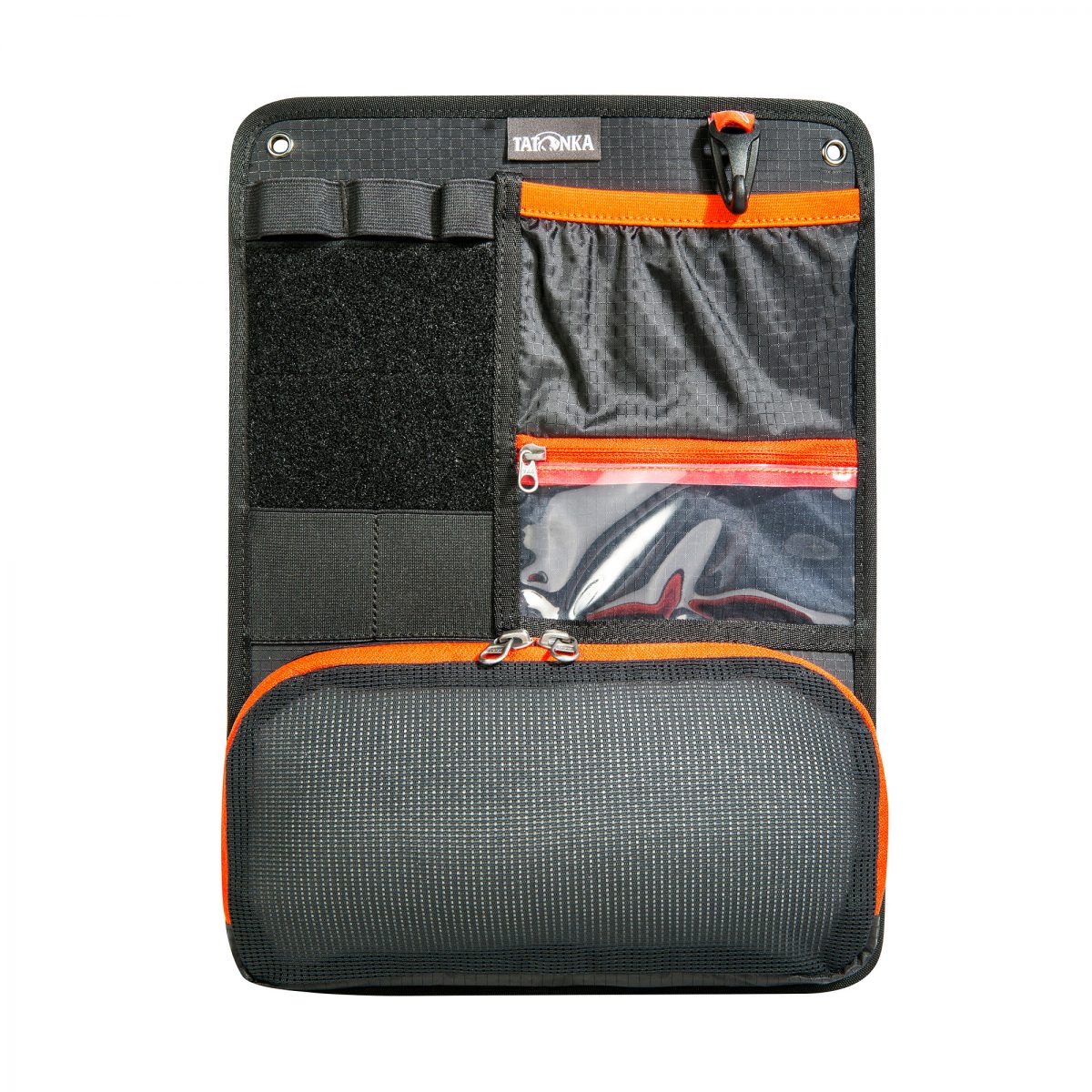 Vielseitig nutzbares Organizer-Panel für Daypacks und Taschen. Mit Fächern, Taschen, Schlaufen und Halterungen auf Vorder- und Rückseite. Vielseitig nutzbares Tatonka Organizer Panel M für Daypacks und Taschen Dieses praktische Panel ist auf Vorder- und Rückseite mit verschiedenen Fächern, Taschen, Schlaufen und Halterungen versehen. Konzipiert ist es für die geordnete und übersichtliche Fixierung individuell zusammengestellter Utensilien, die ruckzuck in verschiedenen Rucksäcken oder Taschen verstaut werden können. Für durchorganisierte Menschen bietet sich auch die Nutzung mit mehreren Panels an (Erste-Hilfe-Panel, Büro-Utensilien-Panel, Party-Panel – der Kreativität sind keine Grenzen gesetzt!) Das Organizer Panel M besitzt die Maße 32 x 24 cm. Es ist auch in der Größe S und der Größe L erhältlich. Reißverschlussfach auf der Vorderseite Schlüsselhalter Netztasche auf der Rückseite Einstecktasche vorne Befestigungsschlaufen Stiftehalterungen Klarsichtfach Klettfläche (Flausch) für Patches etc. Produktspezifikation: Abmessungen: 32 x 24 cm Gewicht: 170 g Material 1: 200 den Polyester PU 200 DEN POLYESTER PU Zusammensetzung 100% Polyester Leichtes, robustes Oxford-Gewebe aus 200 den-Polyestergarn mit dreifacher PU-Beschichtung.