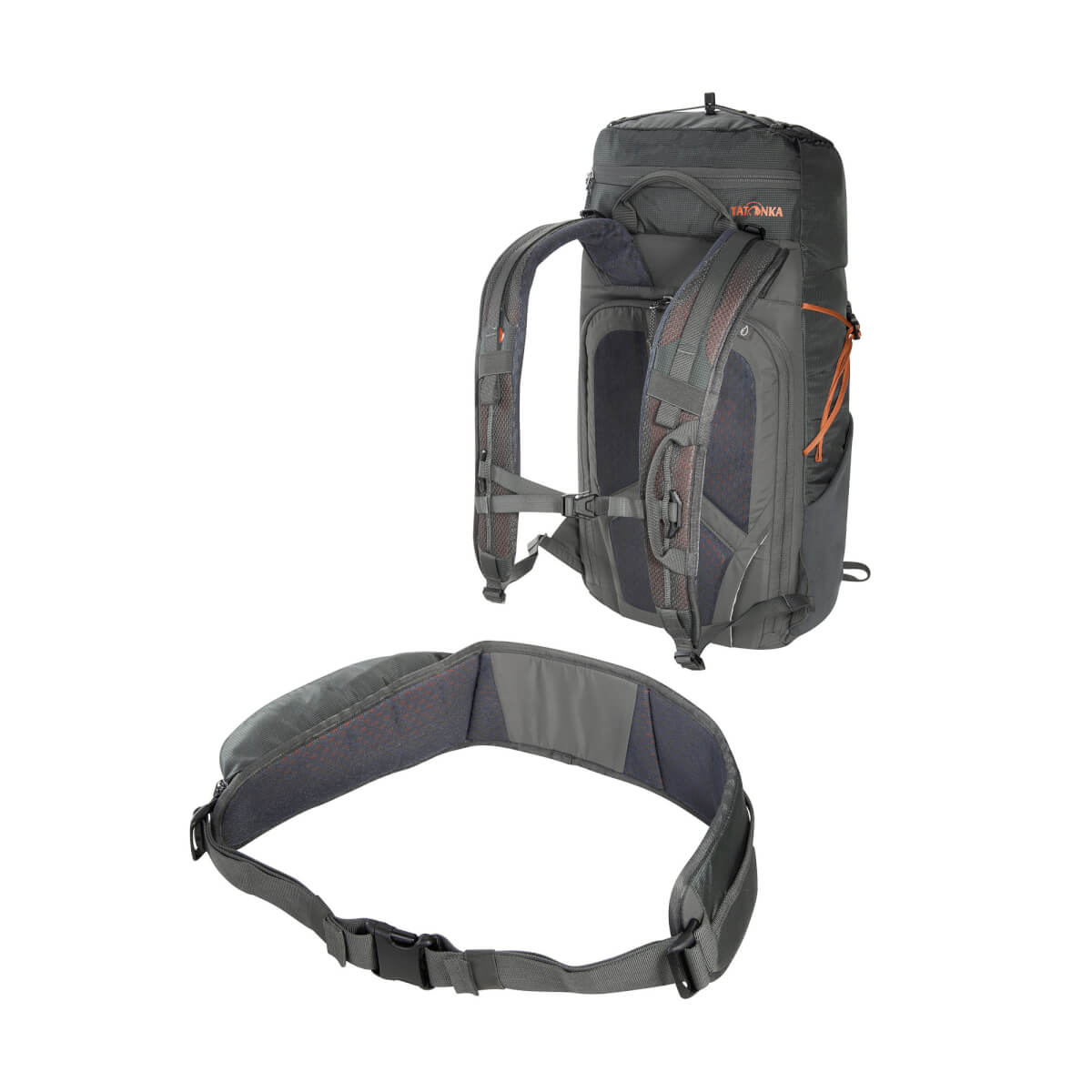 Wanderrucksack mit Kontaktrücken-Tragesystem für anspruchsvolle Bergtouren: Tatonka Norix 27Der Norix 27 von Tatonka besitzt 27 Liter Volumen im Hauptfach, außerdem kannst du Ausrüstung in den elastischen Front- und Seitentaschen und im Deckelfach verstauen. Auch Materialschlaufen auf der Front und eine elastische Spinne auf dem Deckel bieten praktische Befestigungsmöglichkeiten. Durch sein Vent Comfort-Tragesystem liegt der Norix 27 eng am Rücken an, das sorgt für eine sehr gute Lastkontrolle auf anspruchsvollen Berg- oder Klettersteigtouren. Die Rückenpolsterung bietet dabei mit dem Belüftungskanal und dem luftdurchlässigem AirMesh-Bezug eine angenehme Luftzirkulation.Zugriff ins Hauptfach von der RückseiteFür einen übersichtlichen Zugriff auf deine Ausrüstung im Hauptfach kannst du den Rucksack mit einem Rundum-Reißverschluss auf der Rückseite komplett aufziehen. Das ist zudem praktisch, weil du das Tragesystem nicht auf die Erde oder auf Wintertouren in den Schnee legen musst.Smarte Features für Klettersteig-TourenDie großen Materialschlaufen an Schulter- und Hüftgurt kannst du nutzen, um die Karabiner des Klettersteigsets einzuhängen, wenn du Passagen ohne Sicherung gehst. Außerdem kannst du den Hüftgurt abnehmen, wenn du den Klettergurt anlegst. So kommen sich beide nicht ins Gehege.• Vent Comfort-Tragesystem• Packsack mit Schneefang• Wanderstockhalterung• Lastkontrollriemen• Materialschlaufe auf dem Schultergurt• Höhenverstellbarer Brustgurt• Umgelenkter Hüftgurt-Zug• Abnehmbarer, gepolsterter Hüftgurt mit Materialschlaufe rechts und Reißverschlusstasche links• Seitenkompression mit feststellbarer Schnalle• Handgriff• Deckelfach mit Schlüsselhalterung• Elastische Zickzack-Schnürung auf dem Deckel• Trinksystemvorbereitung• Integrierte Regenhülle im Bodenfach• Seitentaschen aus elastischem Material• Materialschlaufen auf der Front• Elastische Einstecktasche auf der Front• Erste-Hilfe-Fach (ohne Inhalt)• PFC/PFAS-freie Imprägnierung• Helmhalterung• Fixiermöglichkeit am Boden• Große Reißverschlussöffnung ins Hauptfach auf der RückseiteDetailsAbmessungen: 58 x 25 x 15 cmPackmass: 0 x 0 x 0 cmVolumen: 27 lGewicht: 1,1 kgRückensystem: Vent Comfort-System Material 1: Microrip 2.1Material 2: 210 HD Nylon FDMaterial Boden: 210 HD Nylon FD MICRORIP 2.1Zusammensetzung 100% Polyamid Dank regelmäßig eingewebter stärkerer Fäden zeigt dieses sehr leichte Material eine feine Karo-Struktur, gleichzeitig ergibt sich eine hohe Reißfestigkeit (Ripstop). Die PU-Beschichtung auf der Innenseite sorgt für Wasserdichtigkeit. Das Material ist PFC/PFAS-frei ausgerüstet. Es wird für Rucksäcke verwendet. 210 HD Nylon FDZusammensetzung 100% Polyamid Das leichte, PFC/PFAS-frei ausgerüstete Polyamidgewebe mit der Garnstärke 210 Denier ist durch dreifache PU-Beschichtung wasserdicht. Das verwendete FD-Garn verleiht dem Material eine matte Oberfläche. Es wird zum Beispiel bei Wanderrucksäcken eingesetzt.