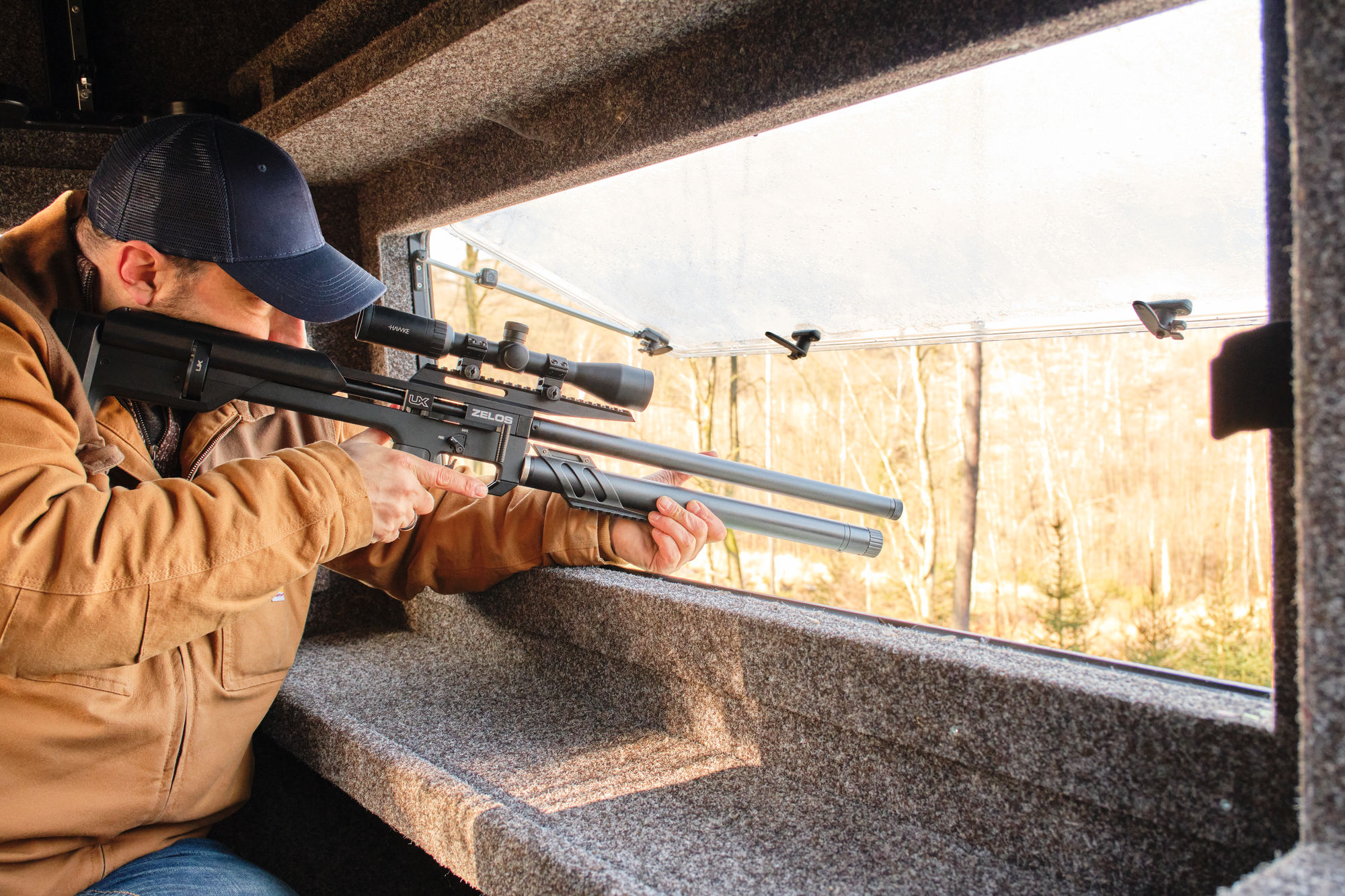 Zusätzliche Präzisionsreserven aktiviert das Zelos durch einen Regulator, der die Mündungsenergie konstant hält und einen in Höhe und Weg einstellbaren Druckpunktabzug. Das PCP-Repetiergewehr ist über die Picatinny-Toprail für die Verwendung von Zielfernrohren vorbereitet und nimmt über das Laufgewinde (1/2″-20 UNF) auch Schalldämpfer auf. Der Pistolengriff ist gummiert und garantiert so eine optimales und sicheres Handling der Zelos.
