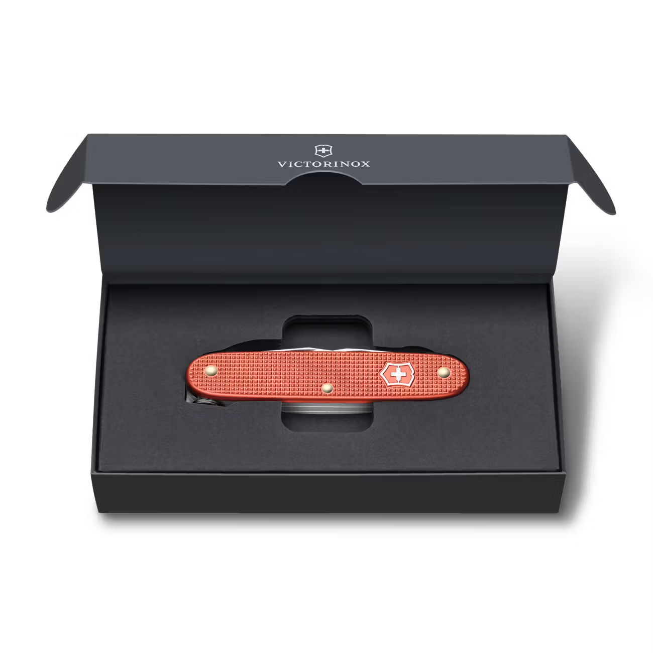 Limited Edition Taschenmesser in Stone Red Sie suchen ein langlebiges und stilvolles Sammlertaschenmesser? Wie der Name schon andeutet, ist die exklusive Farbe Stone Red der 2025 Alox Limited Edition Serie inspiriert von der Stärke und Widerstandsfähigkeit von verwittertem Stein. Pioneer X Alox bietet neun praktische Funktionen und ein geerdetes Design, das in der exklusiven Farbgebung dieses Jahres besonders hervorsticht und ein Gefühl von Ruhe und Ausgeglichenheit schafft. Werkzeuge Klinge, gross / Schere / Schraubendreher 3 mm / Schraubendreher 7 mm / Dosenöffner / Kapselheber / Drahtabisolierer / Stech-Reib-Ahle / Ring Höhe: 24 mm Länge: 93 mm Breite: 15 mm Gewicht: 94 g Ursprungsland: Schweiz Feststellklinge: Nein Einhandklinge: Nein Anzahl Merkmale: 9 Farbe: Rot