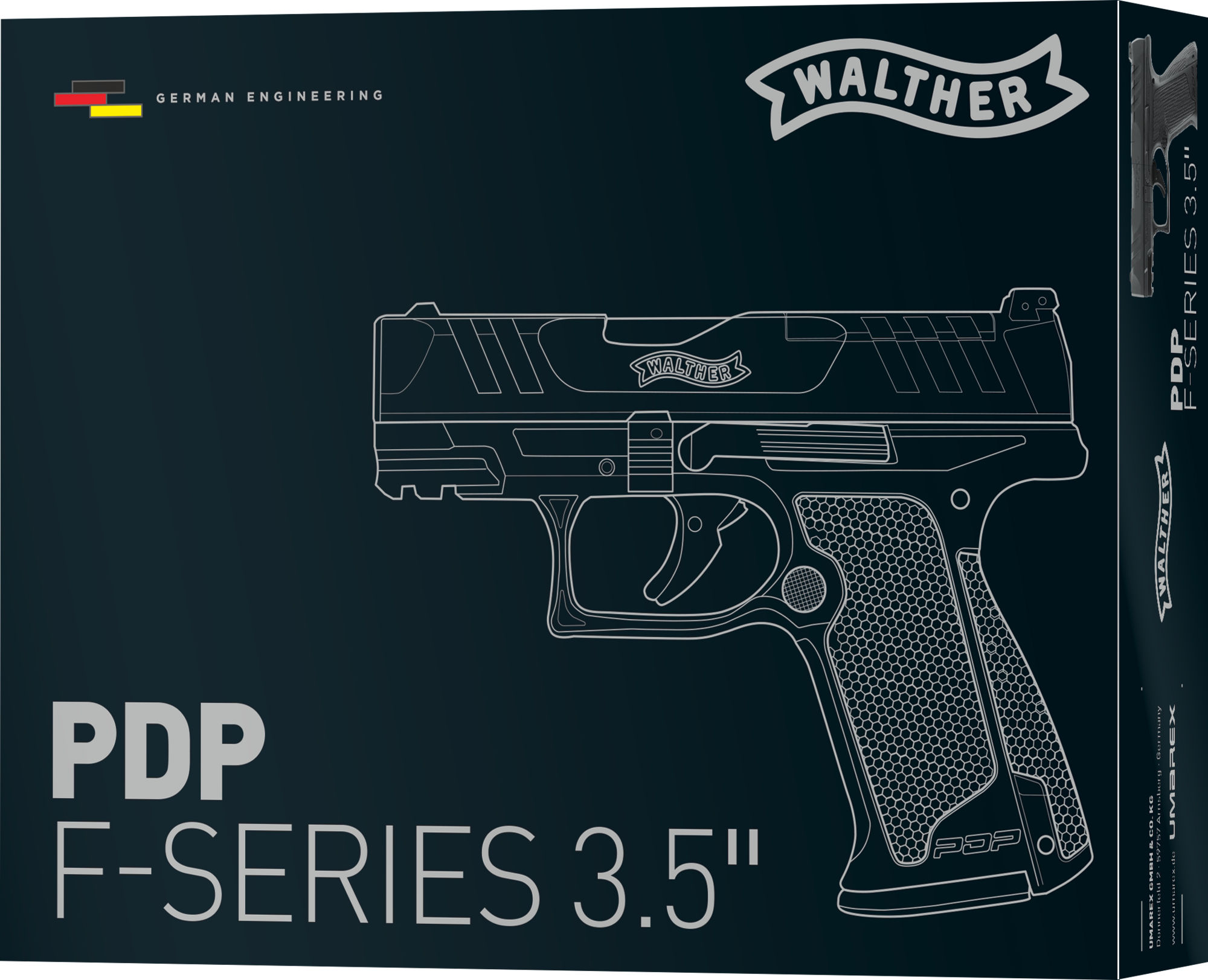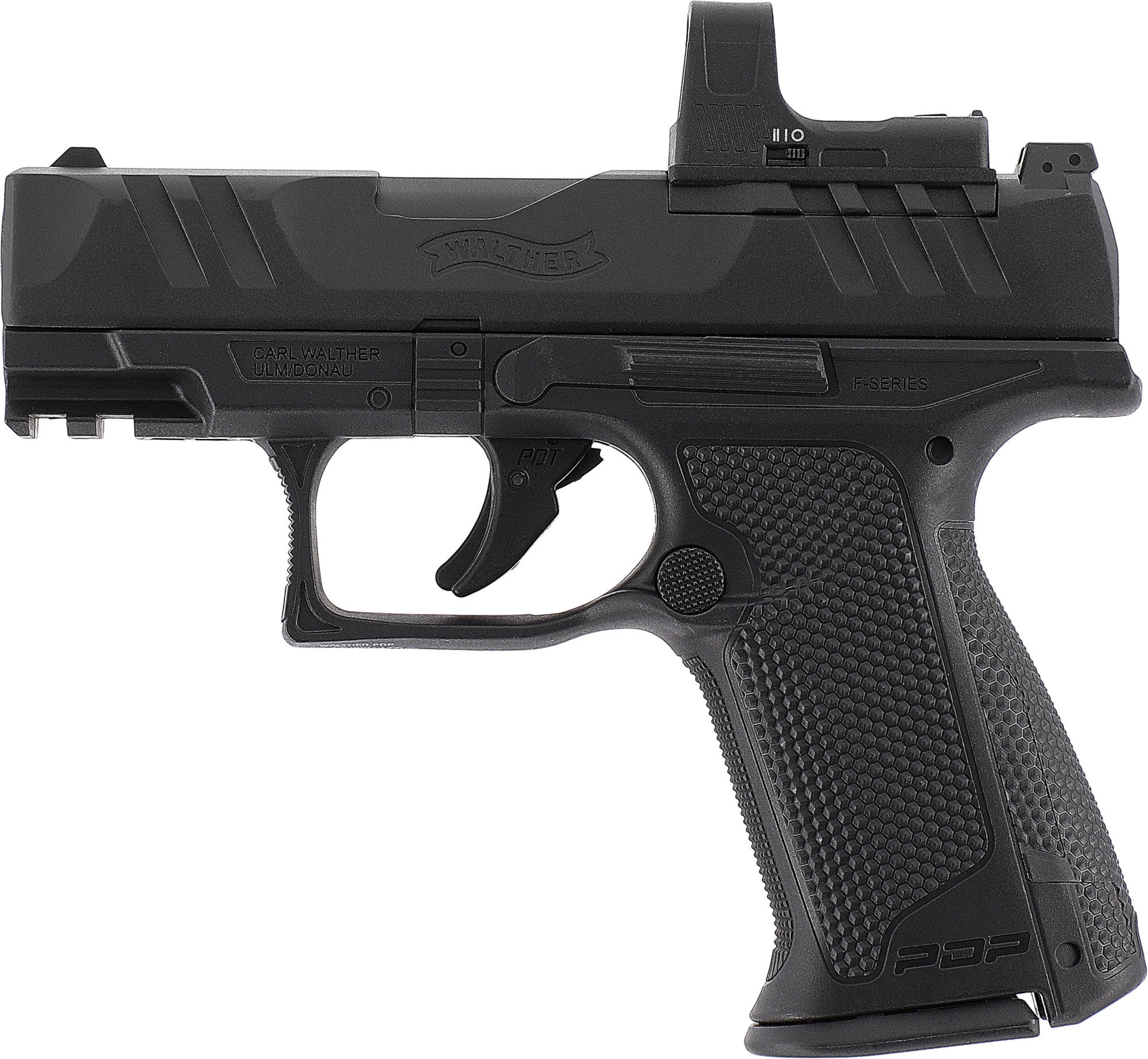 „It‘s You Duty To Be Ready” – Mit diesem Claim legt die Walther Performance Duty Pistol ihren Anspruch an Qualität und Einsatzbereitschaft für professionelle Anwender offen dar. Die sorgfältig entwickelte F-Series wartet mit einer optimierten Ergonomie für Anwender mit kleineren Händen auf. Dazu wurde der Griffumfang reduziert und die Form an die Anforderungen an eine kompaktere Ausführung der Walther PDP angepasst.