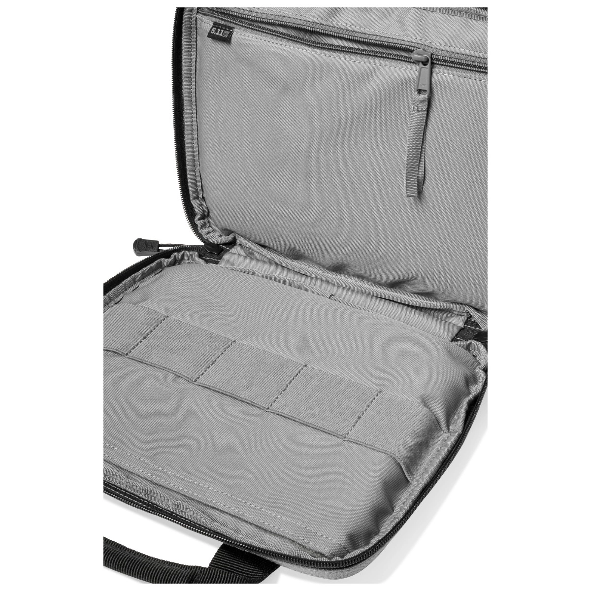 Das praktische, robuste und funktionelle 5.11 Double Pistol Case ist eine ideale Lösung zur Aufbewahrung von Kurzwaffen. Damit können zwei Kurzwaffen und jede Menge Magazine sicher transportiert werden. ABMESSUNGEN 22,2cm H x 27,9cm L x 8,8cm B 5.5-Liter Gesamtvolumen Gepolsterte Tasche für 2+ Kurzwaffen und zusätzliche Pistolenmagazine Kurzwaffen werden sicher in Reißverschlusstaschen verstaut Elastische Schlaufen sichern Kurzwaffenmagazine und anderes Zubehör Abschließbare YKK®-Reißverschlüsse Obere Haltegriffe Gurtschlaufen für optionale vertikale oder horizontale Befestigung eines Schultergurts (Schultergurt nicht enthalten) Namensband an der Außenseite 1050D Nylon