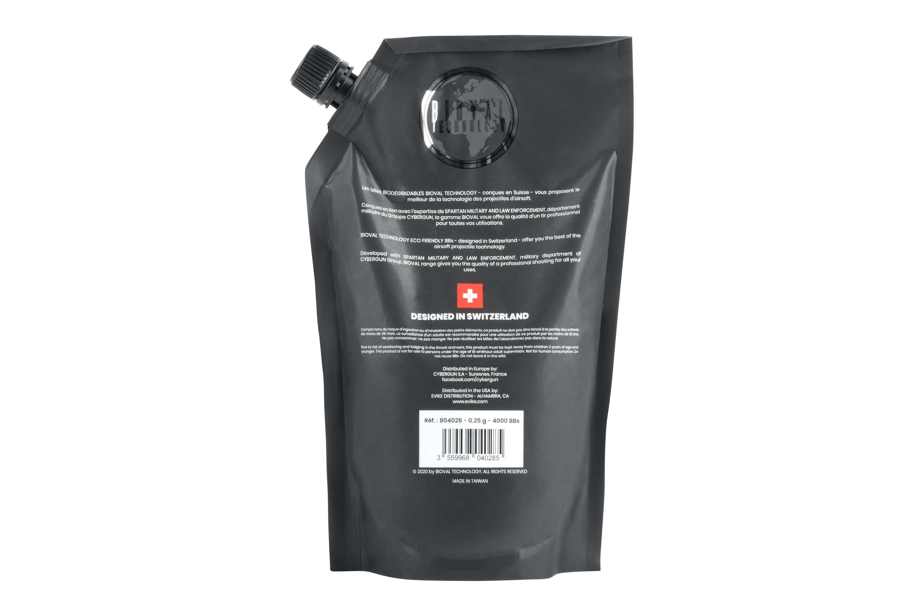 0.25g für alle Waffen mit einer Mündungsenergie zwischen 1.0 Joule und 1.6 Joule Inhalt : 5600 Schuss Kaliber : 6mm bb Bio BBs