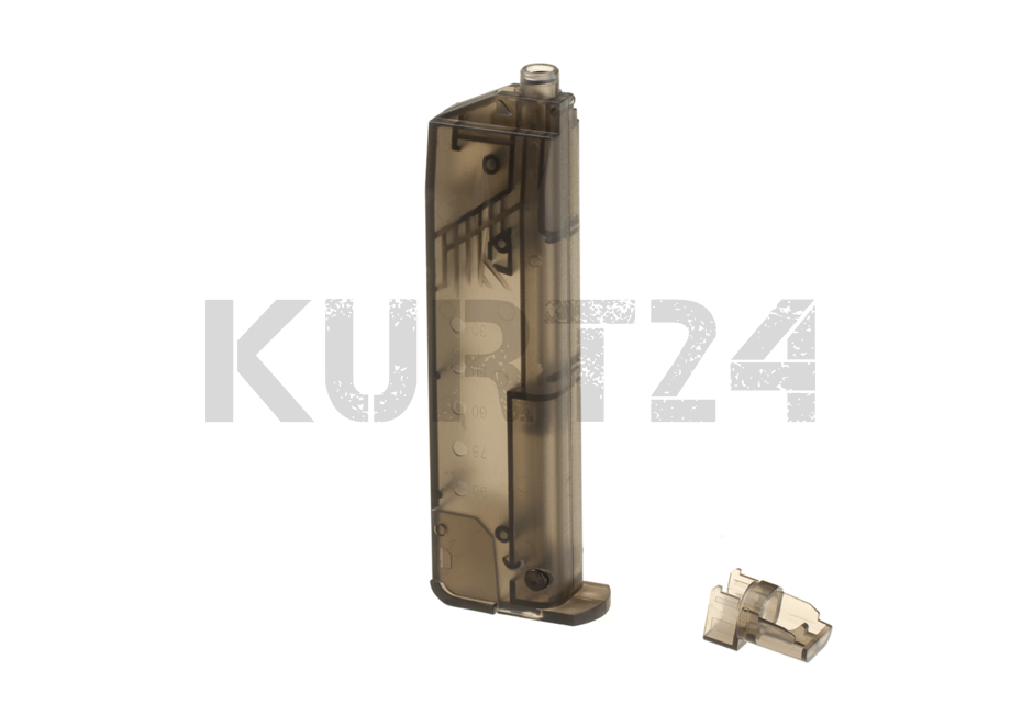 STI Magazin für die STI Pit Viper. Kaliber: 6 mm System: Co2 Blow Back Magazinkapazität: 30 Schuss Munitionstyp: BBs Material: Metall + Kunststoff Farbe: Schwarz Gewicht: 400 g Wir empfehlen die Benutzung eines Speedloaders (nicht im Lieferumfang enthalten)