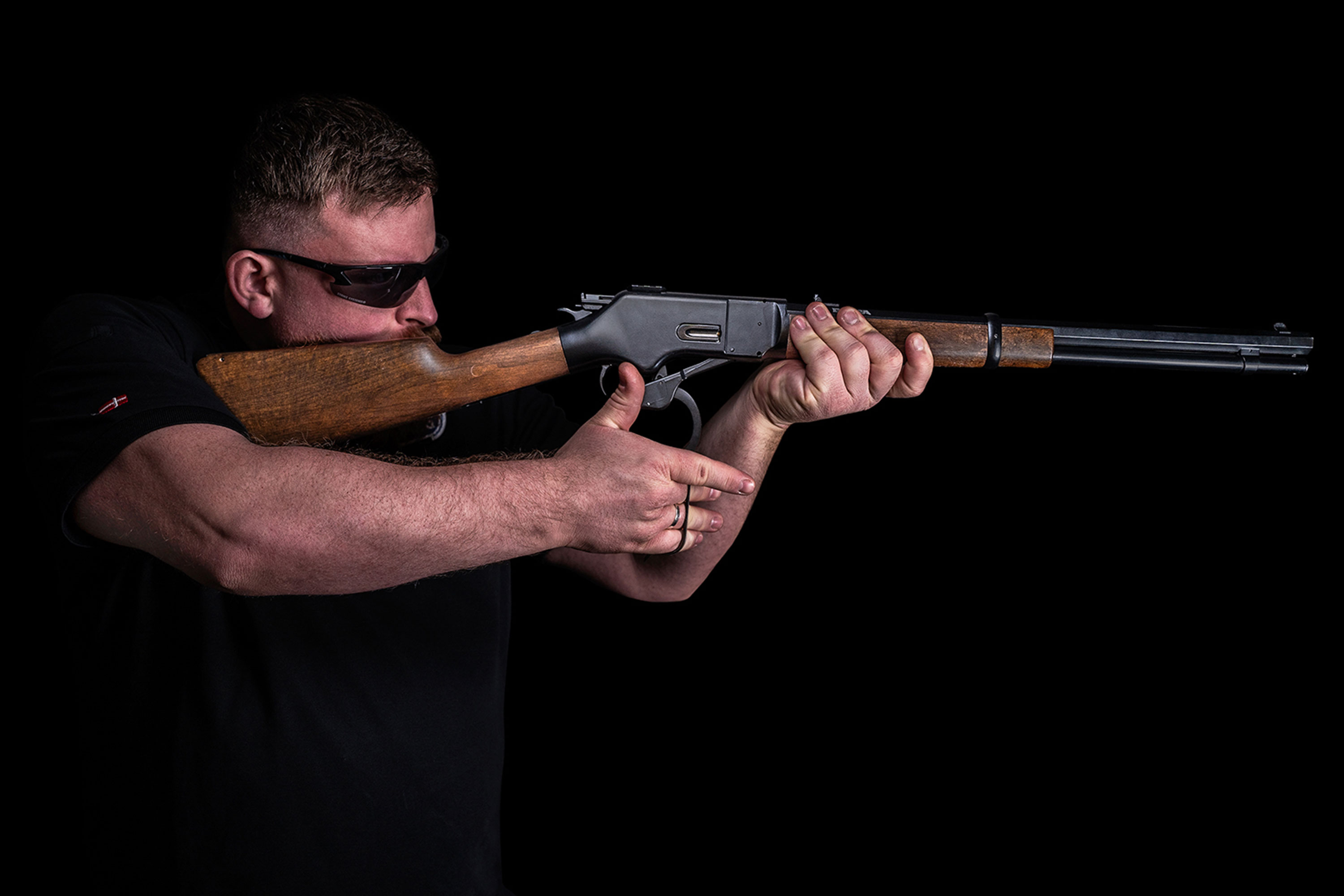 Die Walther Lever Action Modelle sind eine gelungene Kombination von Tradition und Innovation: eine amerikanische Legende unter den Repetierern kombiniert mit neuester CO₂-Technik. Die große 88 Gramm CO₂-Kapsel hat eine Kapazität für mindestens 450 Schuss bei konstanter Energie. Der Repetiervorgang bietet Wild-West-Feeling pur: Wie beim legendären Original schiebt der Schütze den Unterhebel nach vorne und transportiert so das Trommelmagazin eine Position weiter. Der dadurch nach hinten geschobene Verschluss spannt gleichzeitig den Hahn. Das Standard-Modell aus edlem Holz und robustem Metall ist ein echter Klassiker – sowohl im Original als auch bei der CO₂-Variante. Ein amerikanischer Mythos lebt weiter – hergestellt in Deutschland. Das Standard-Modell aus edlem Holz und robustem Metall ist ein echter Klassiker – sowohl im Original als auch in der CO₂-Variante. Klassischer Wildwest-Unterhebelrepetierer Vollmetall mit edlem Buchenholz-Schaft Einstellbare Visierung Gummierte Schaftkappe 8-schüssiges Trommelmagazin Energiestufe (E₀): < 7,5 J Geschossgeschwindigkeit (V₀): 175 m/s (574 fps) Kaliber: 4,5 mm (.177) Diabolo Antrieb: 1x 88 g CO₂ Trommelkapazität: 8 Schuss Schusskapazität: 300 Schuss Abzug: Single Action Sicherung: Druckknopfsicherung Länge: 996 mm Gewicht: 2740 g Die Waffe wird in einem Karton ausgeliefert