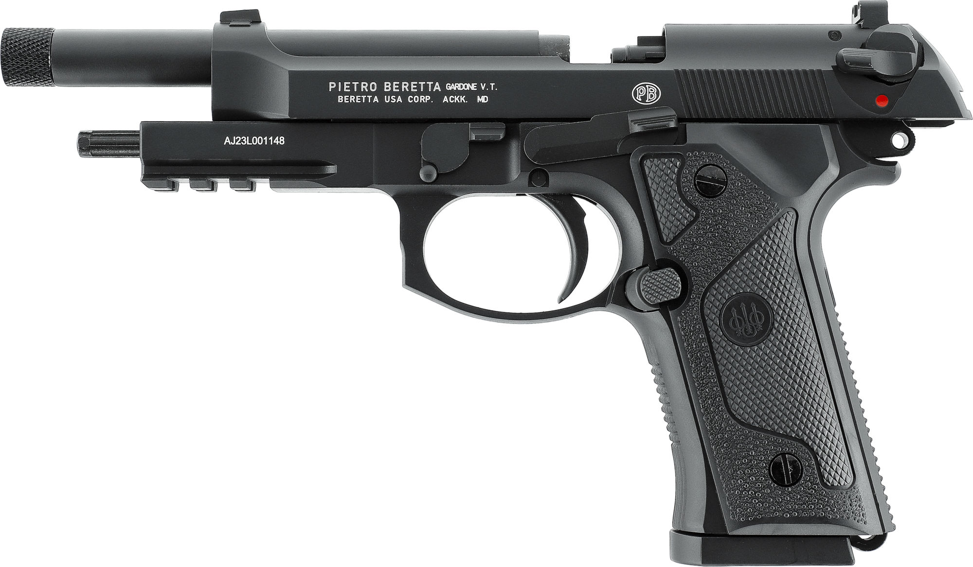 Diese CO2-Pistole mit Blowback-Effekt und Metallschlitten hat die neueste Version der US-Dienstpistole zum Vorbild. Auf den ersten Blick wie die berühmte Beretta M92 gestaltet, liegen die Unterschiede im Detail. Das Griffstück wurde neu gestaltet und bekam eine rutschfestere Struktur und vorn zudem eine Picatinny-Schiene. Der verlängerte Lauf trägt eine Abschlussmutter, die ein Schalldämpfergewinde überdeckt. Schlussendlich sorgt die FDE-Beschichtung („Flat Dark Earth“) für ein originalgetreues Aussehen. Kaliber: 4,5 mm (.177) Steel BB Magazinkapazität: 16 Schuss Geschossgeschwindigkeit: ca. 50 m/s Abzug: Single- und Double-Action Länge: 225 mm Gewicht: 850 g